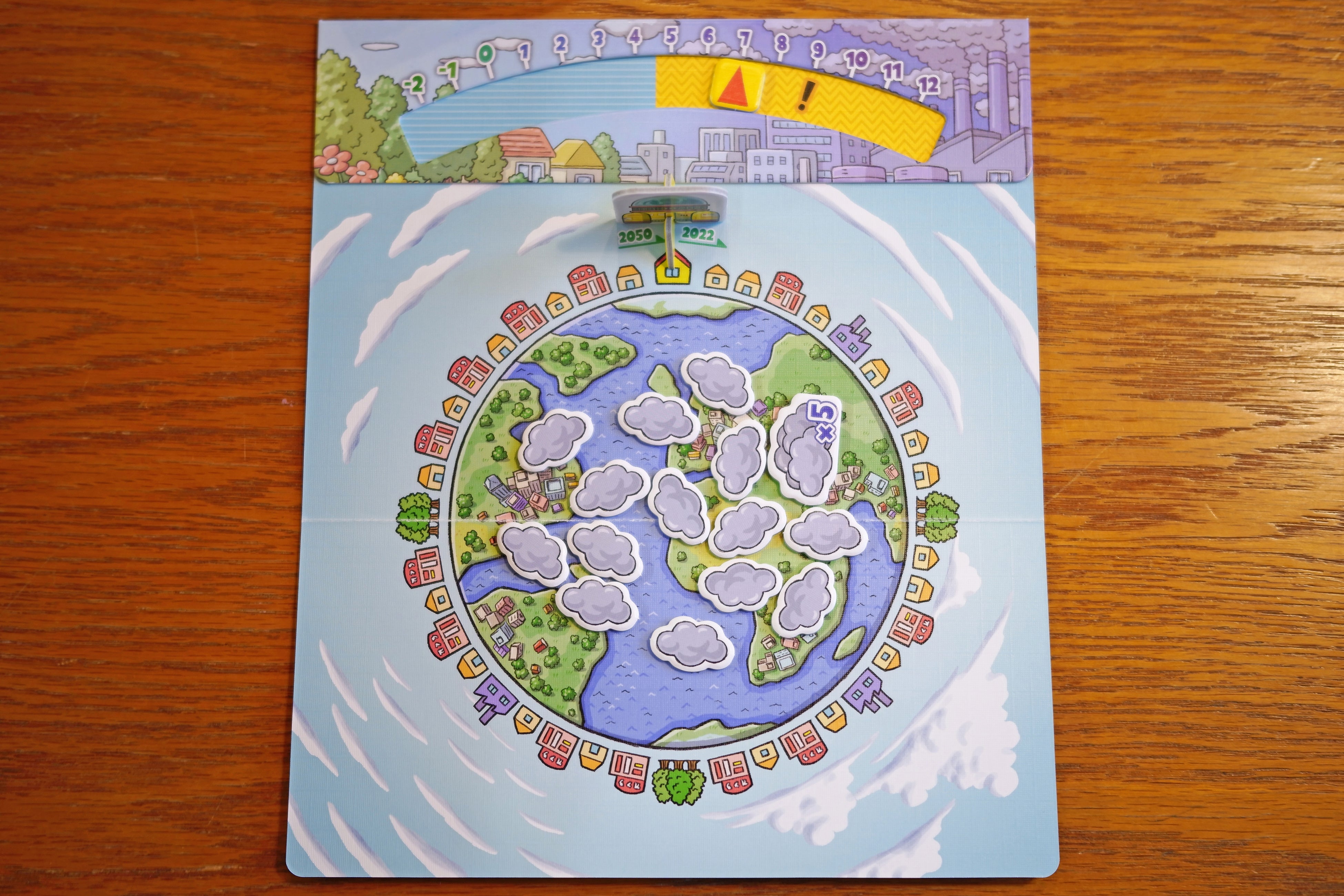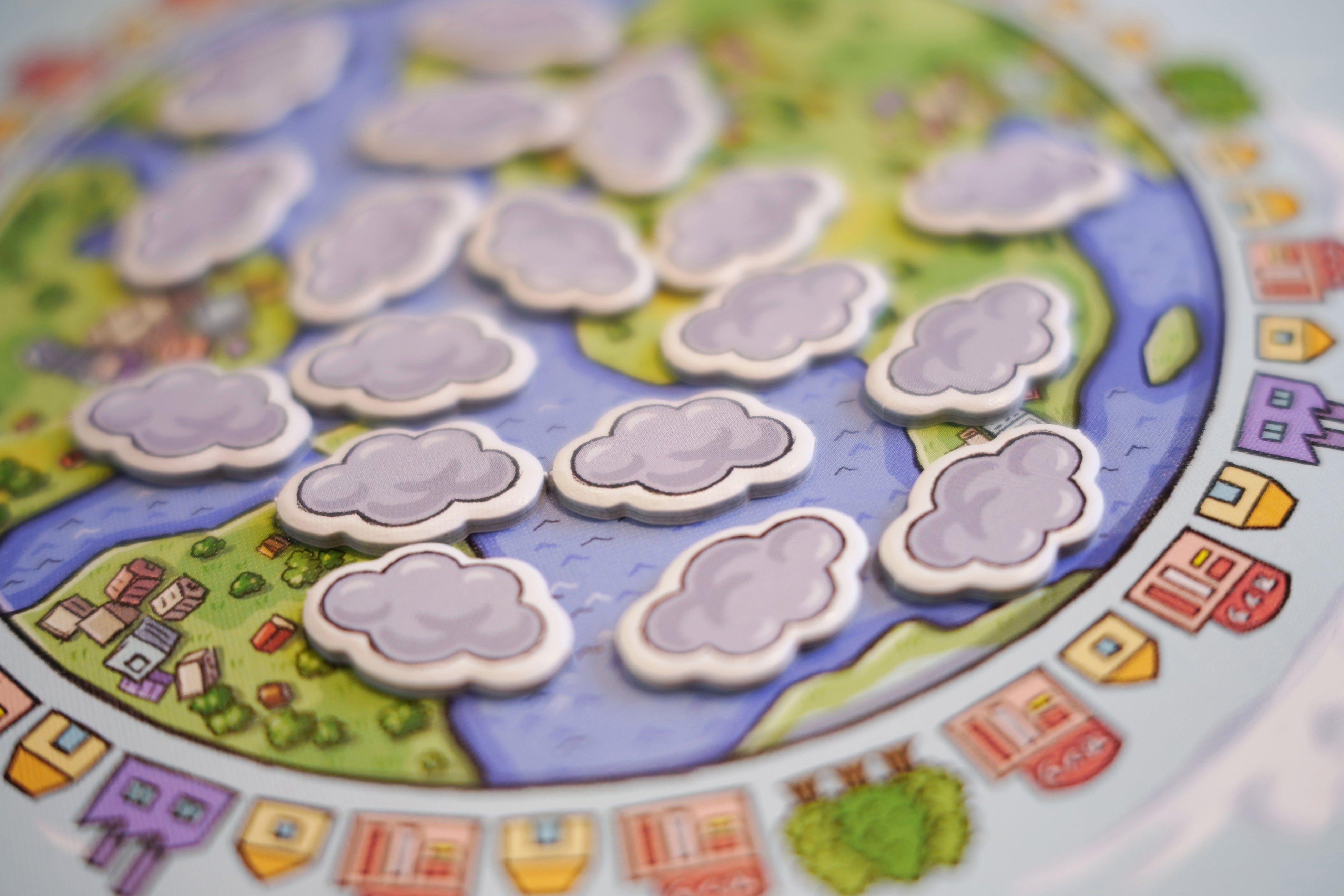選んだカードのCO2ポイント分を、アースボードから雲形のCO2ポイントチップを増減させます。