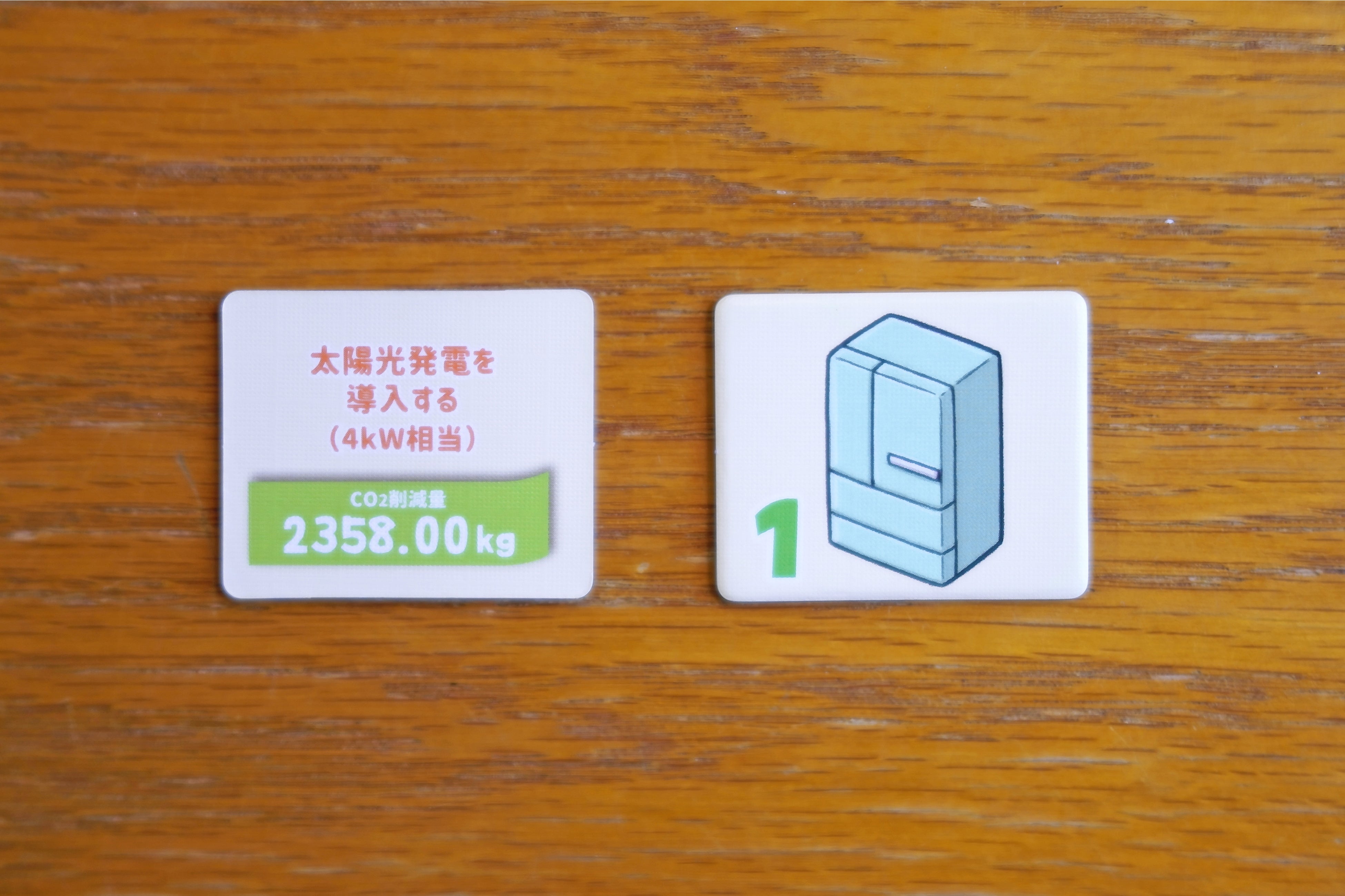 本ボードゲームでは家庭でのCO2削減・排出に関するアクションと