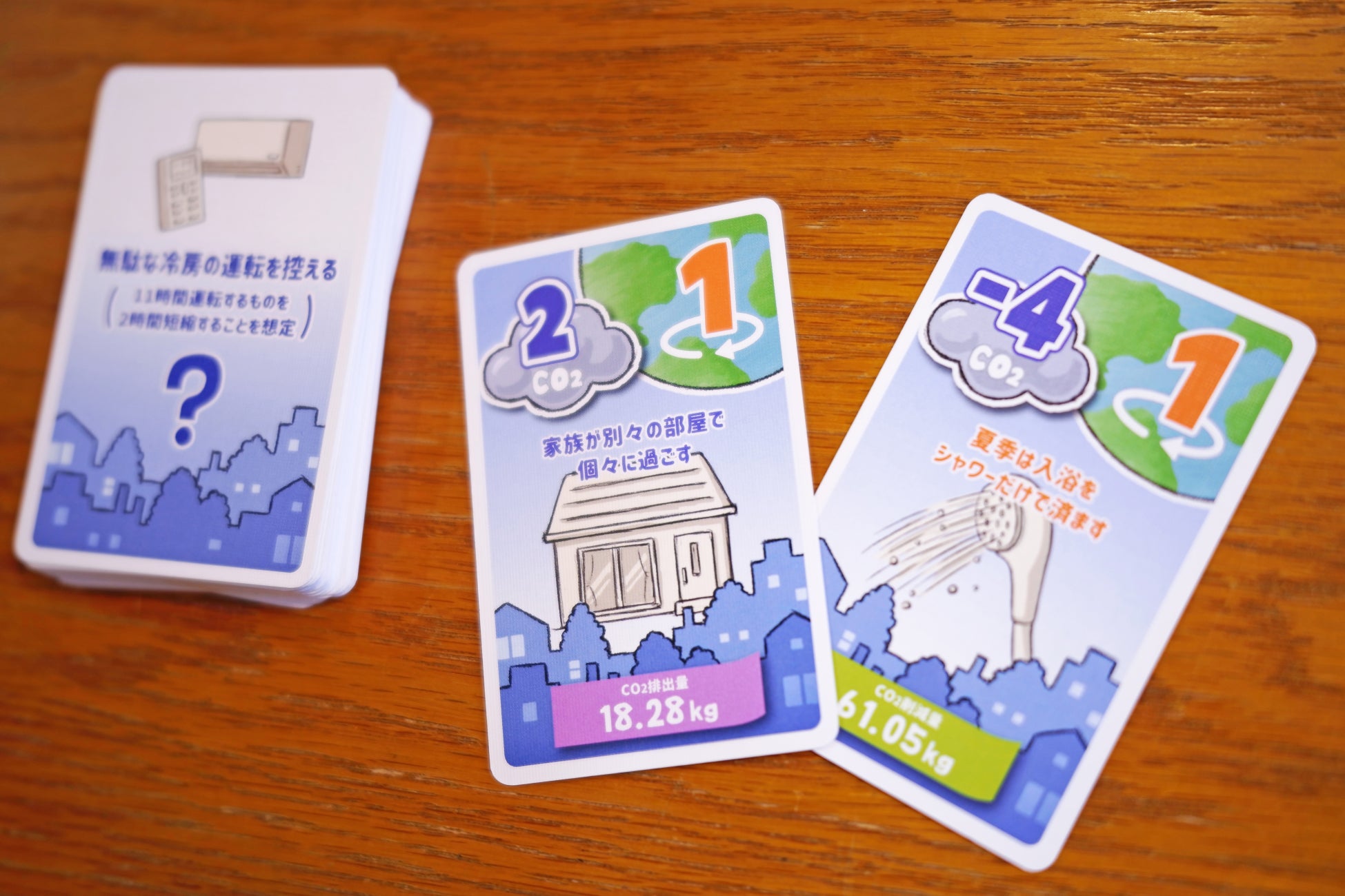 プレイヤーはCO2をより減らせるカード、より出さないカードを選び続けてミッション達成を目指していきます。
