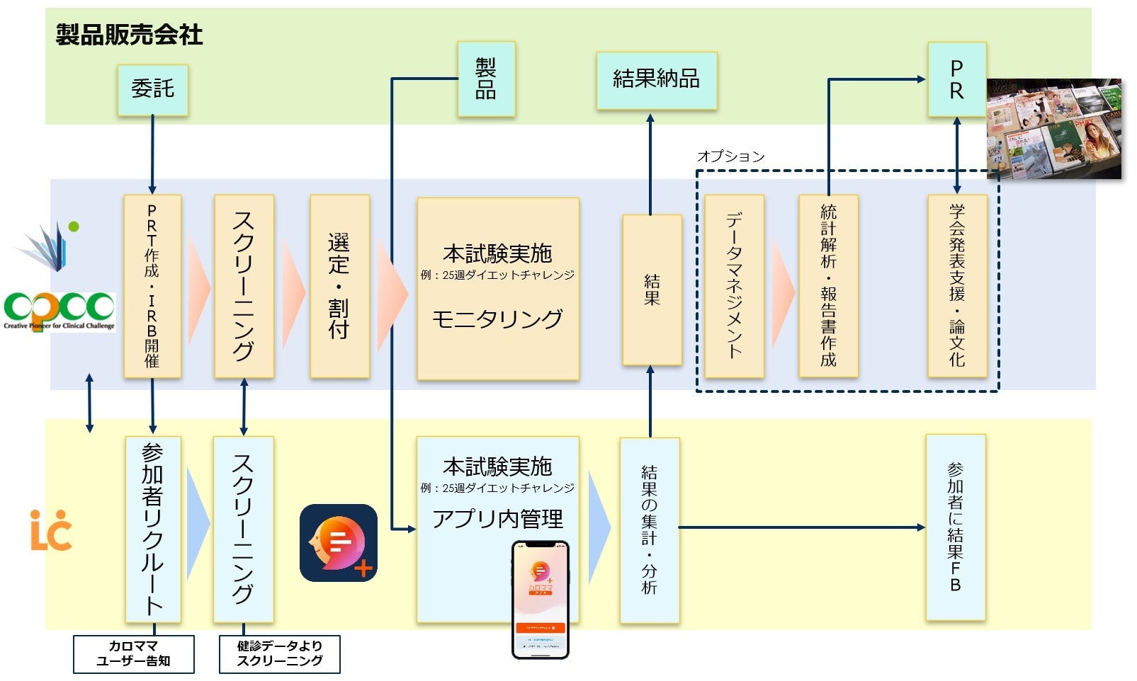 臨床試験の受託事業を運営する株式会社アイメックRD(本社:東京都中央区、代表取締役社長:大澤 裕樹、以下 アイメックRD)とCPCC株式会社(本社:東京都中央区、代表取締役:大川 勝、以下 CPCC)は、AI健康アプリ「カロママ プラス*」(以下 カロママ プラス)を提供する株式会社リンクアンドコミュニケーション(本社:東京都千代田区、代表取締役社長:渡辺 敏成、以下 リンクアンドコミュニケーション)と連携し、完全オンライン型の市販後臨床試験サービス「モニタリング・リサーチサービス」を2023年2月より開始することを発表いたします。