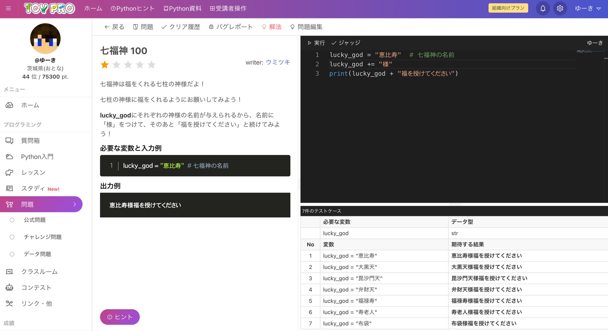 日商プログラミング検定やプロ検等のPythonプログラミング検定の練習問題としてもご活用いただけます。