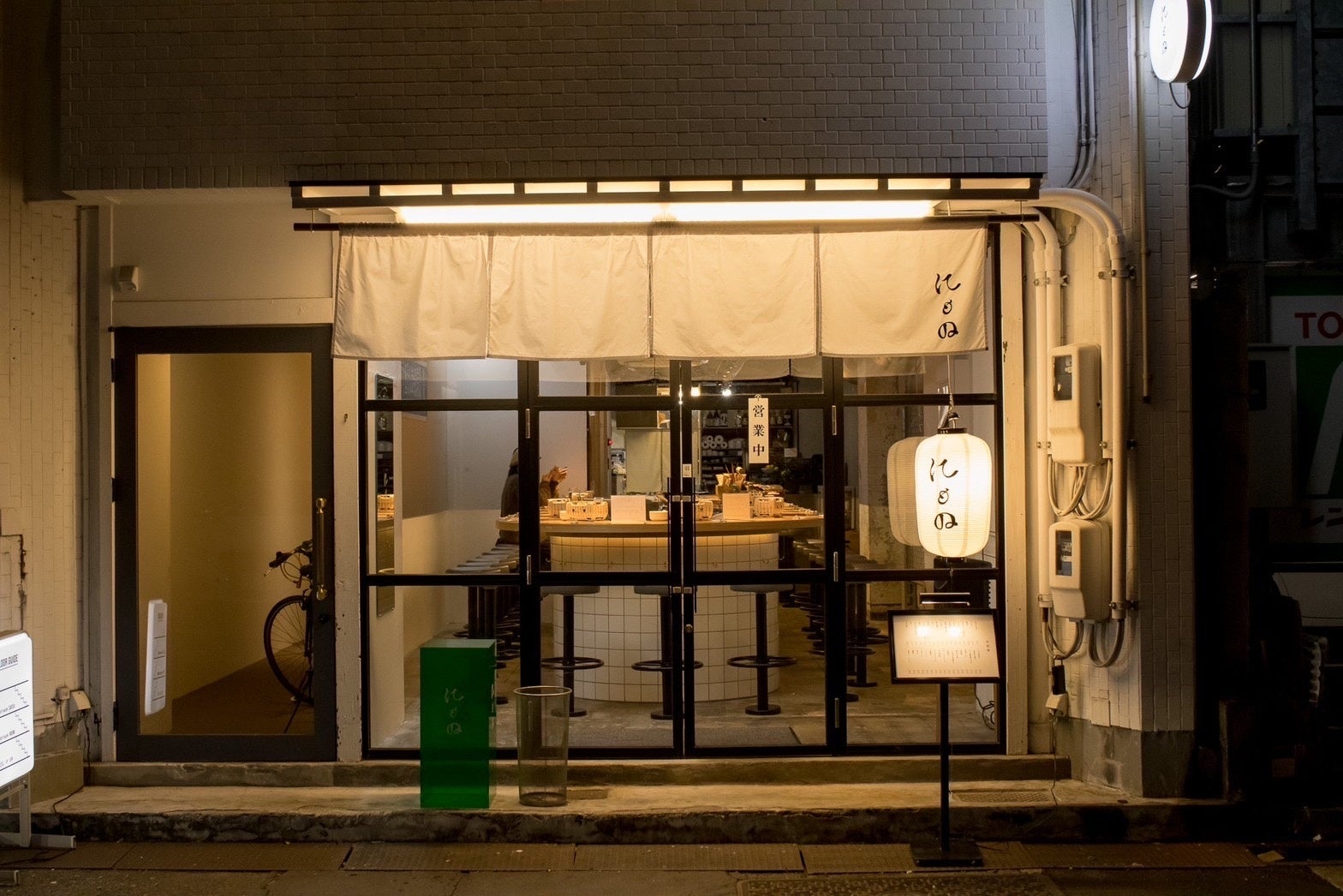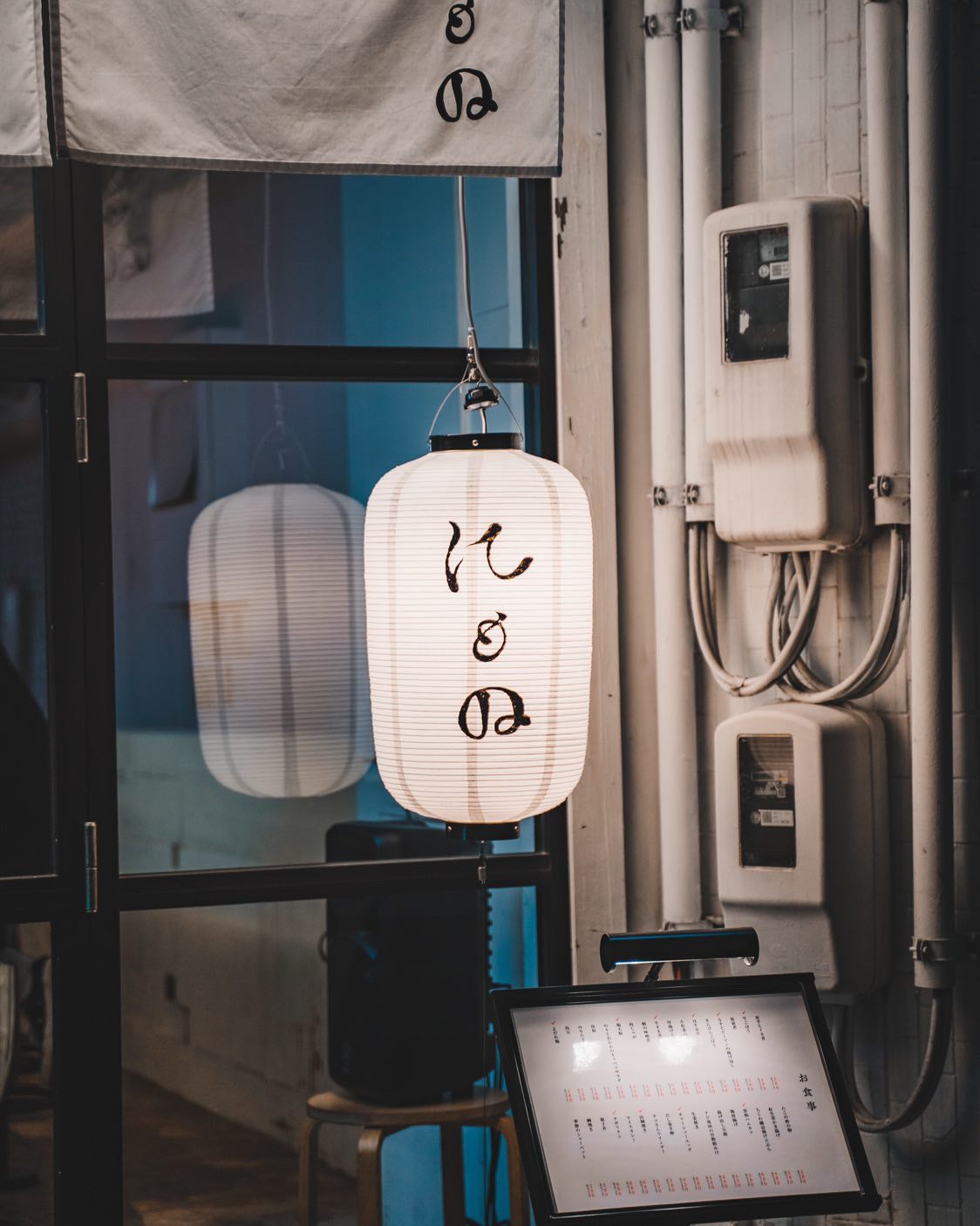 入口にはオリジナルロゴの入ったのれんと提灯があり居酒屋らしさが感じられますが、ガラス張りの入口から見える店内との対比でモダンな雰囲気になっています。