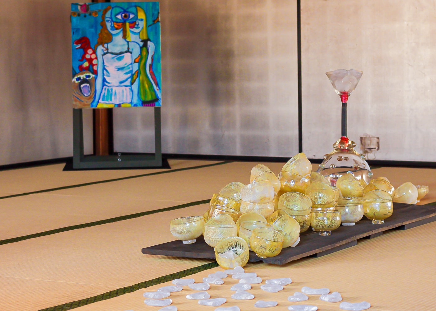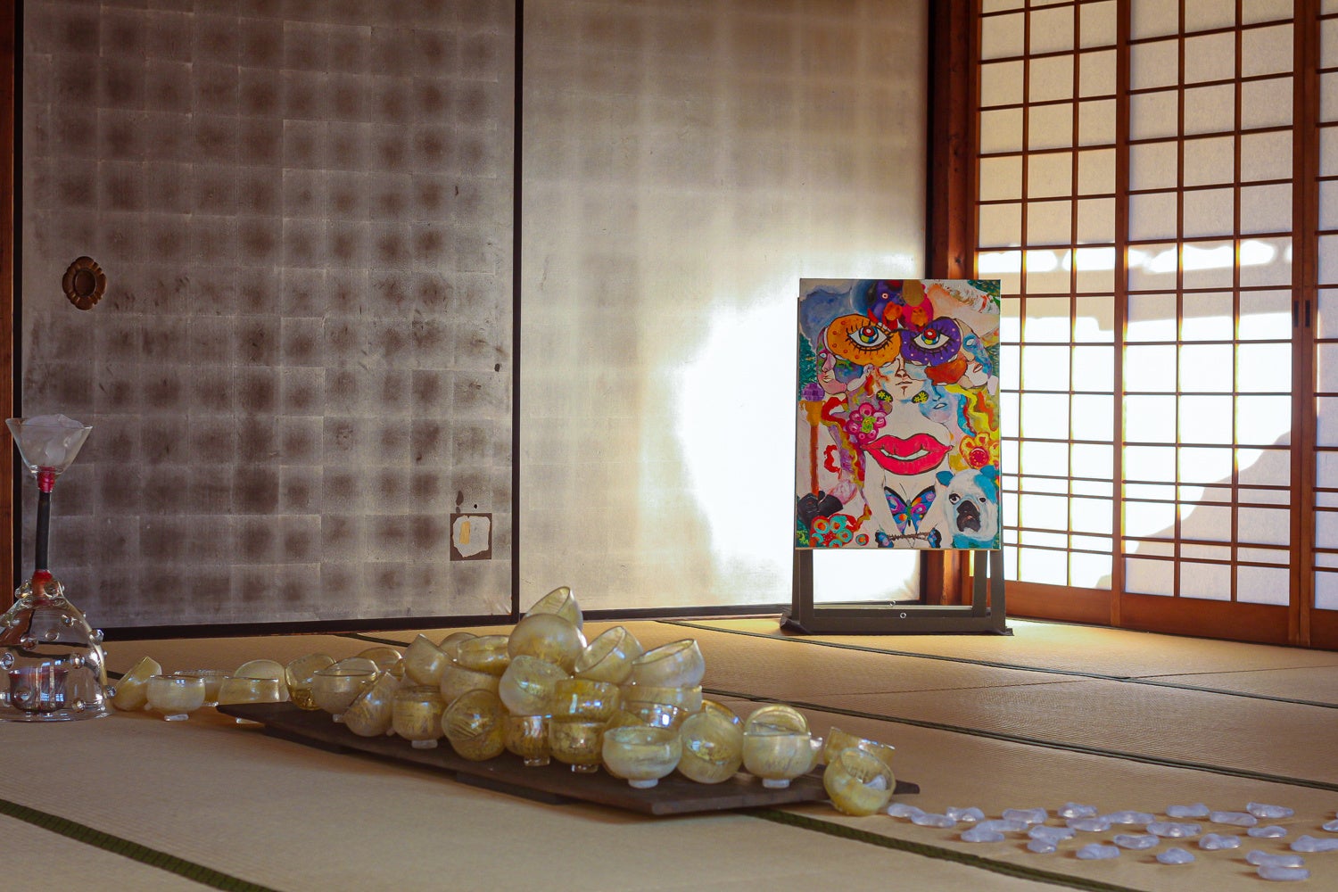 京都・西陣 妙蓮寺特別拝観「いちにちの世界の彩度と透明度と寺宝の虫干し展」開催!本阿弥家の末裔のガラス彫刻と障碍者アートのコラボ!