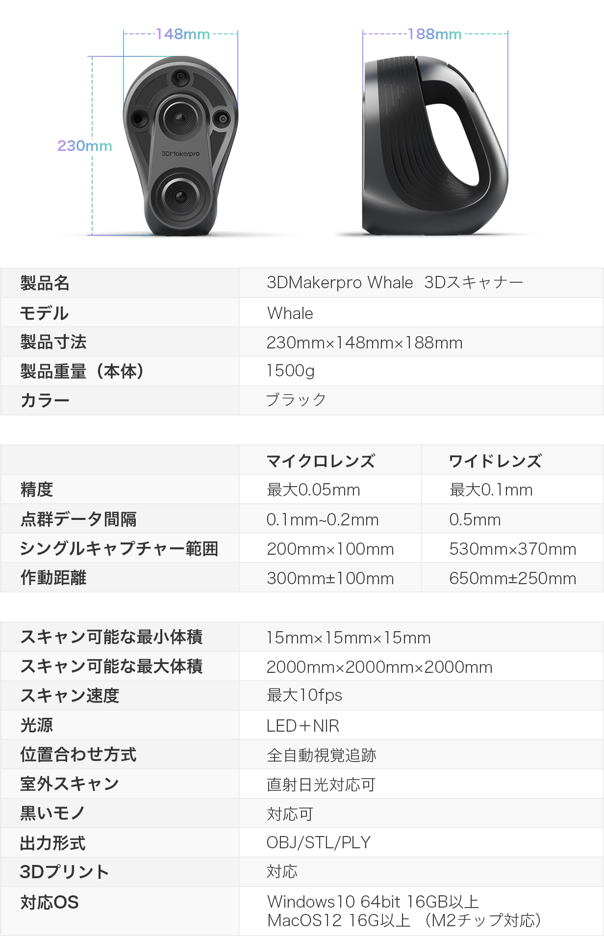 製品名: 3DMakerpro Whale 3Dスキャナー