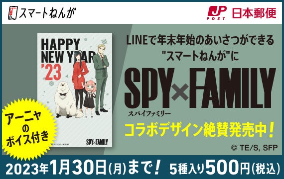 日本郵便株式会社は、LINEで年末年始のあいさつ体験ができるサービス「スマートねんが」で、本日12月8日(木)よりTVアニメ「SPY×FAMILY」コラボレーションテンプレートを販売します。