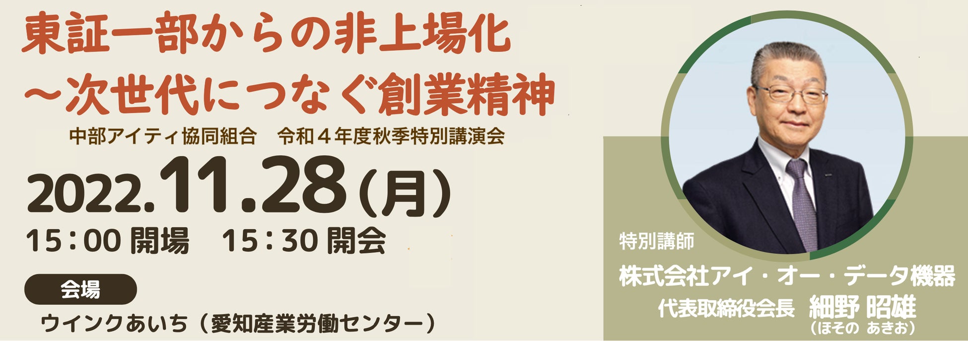 中部アイティ協同組合 「秋季特別講演会」を11月28日に開催