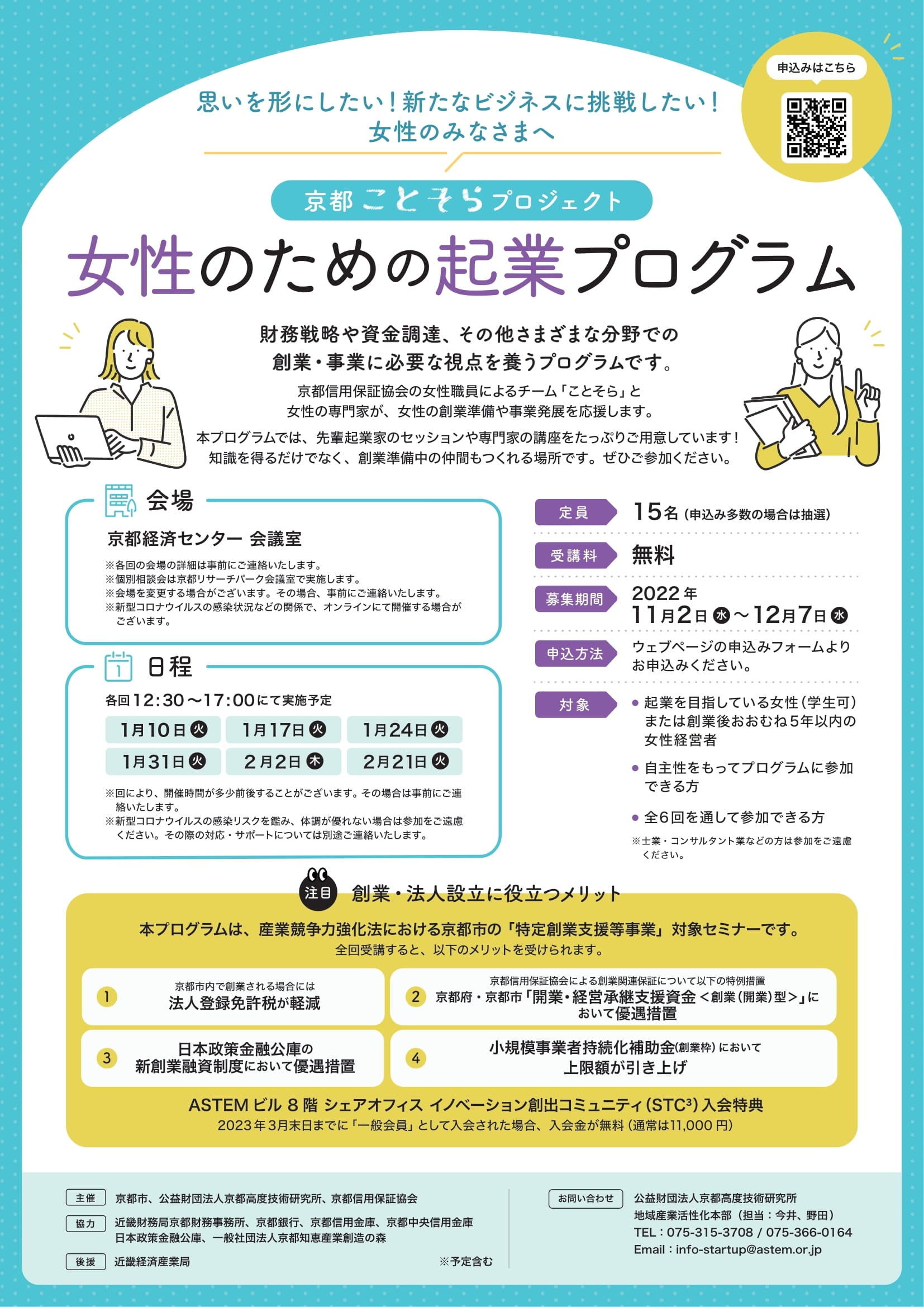 京都ことそらプロジェクト「女性のための起業プログラム」を開催します!
