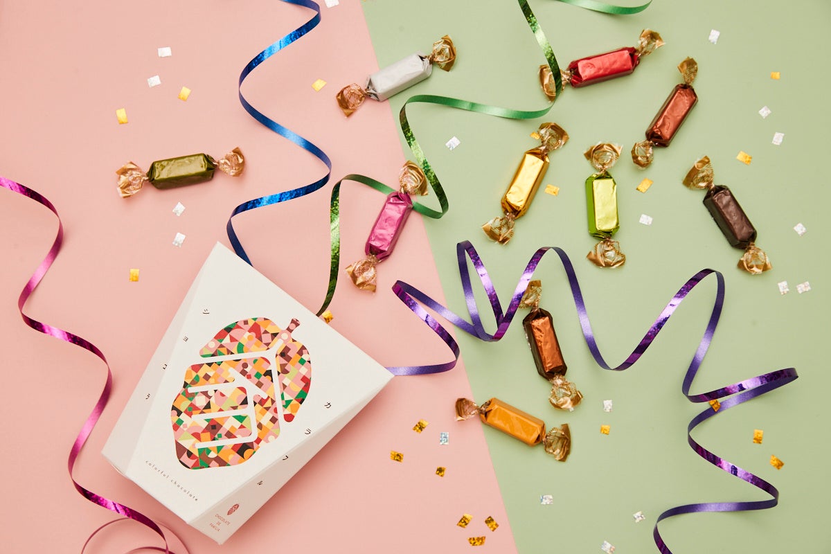 - 一人でもみんなでも。10種の味わいが楽しい、まろやかな口溶けのカラフルショコラ