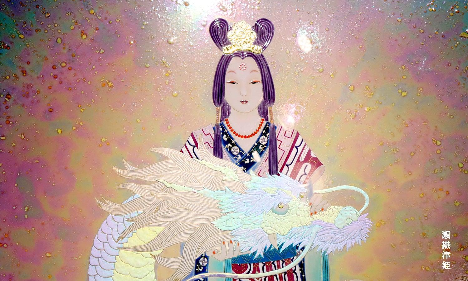 日本書紀や古事記などの歴史書には何一つ出て来ないがゆえに、さまざまな異名を持つ謎多き女神「瀬織津姫」。時代の流れとともに、その時々の権力者が自身を神格化するために表舞台から存在自体を消されたり、名前を変えられているとも言われています。瀬織津姫は日本書記の原書とされている『ホツマツタエ』には登場しており、作家は「縄文より人々が抱いた自然界の万物に対する畏敬や畏怖の念が託された女神なのではないか」と考え、陶彩画にこの女神を映し出しました。夫婦という一説もある国常立命=ニギハヤヒと初の同時展示となります。