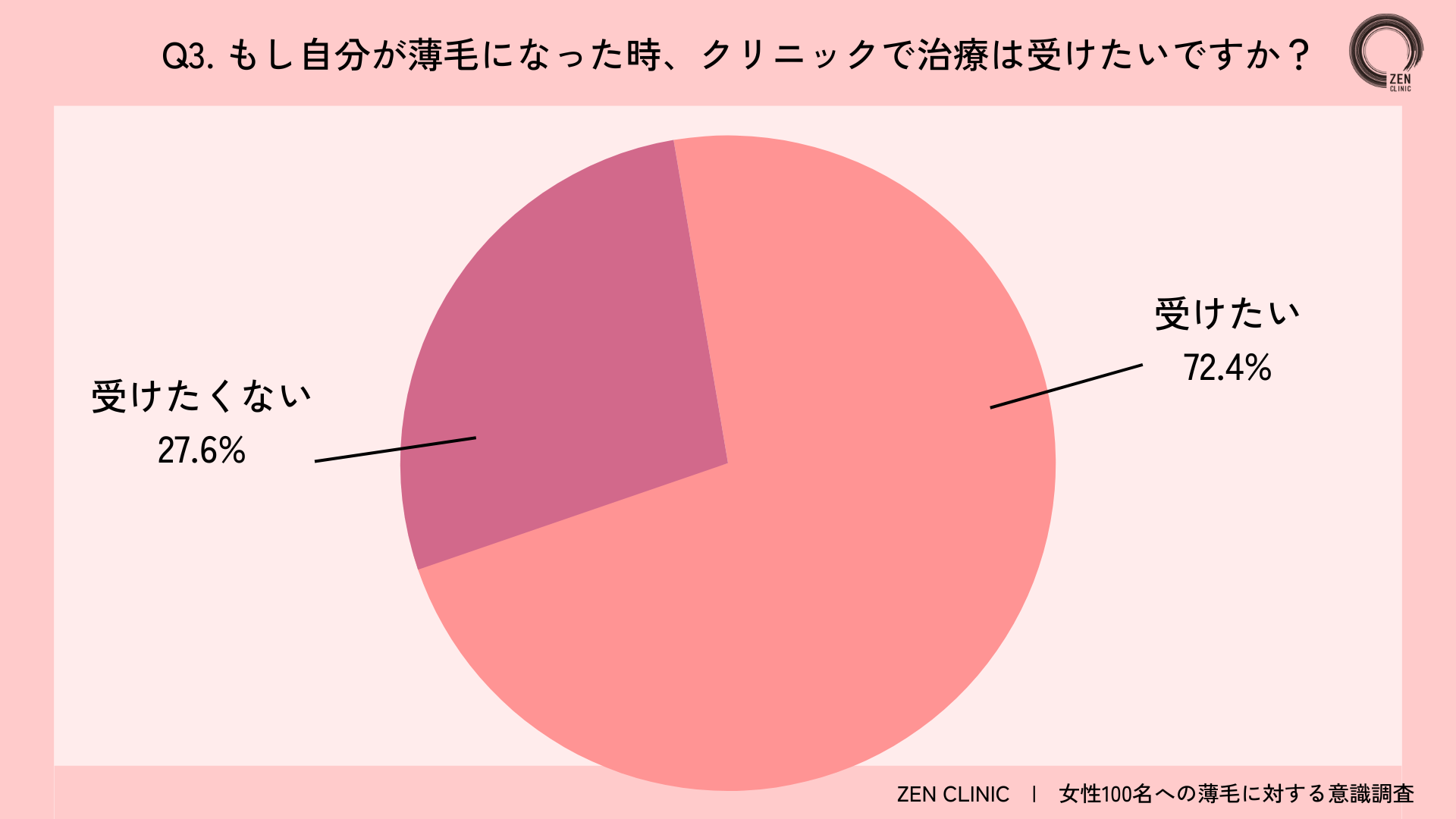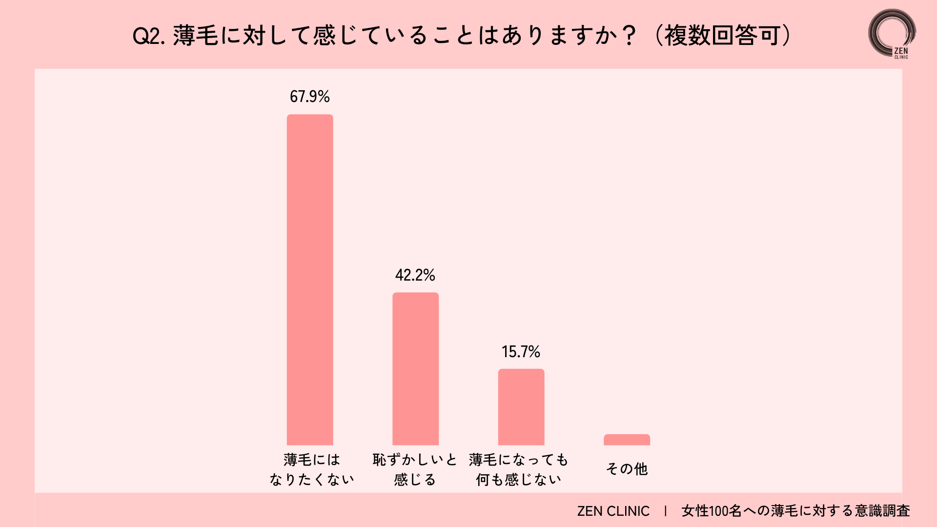 今回は、美容に関心のあるZENクリニックをご利用の100名の女性を対象に、薄毛に対する意識調査を実施いたしました。