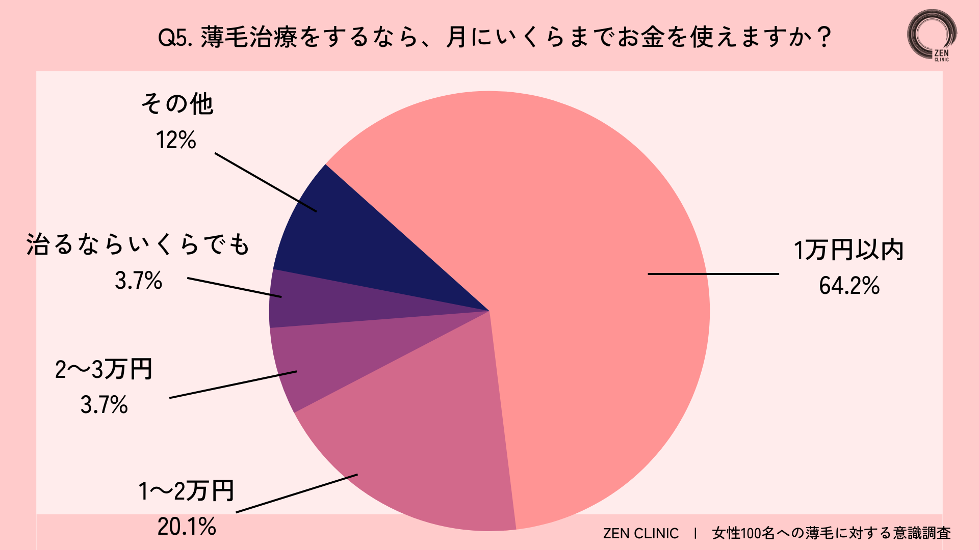 薄毛治療をするなら、月1万円以内にしたいと回答した方は6割以上