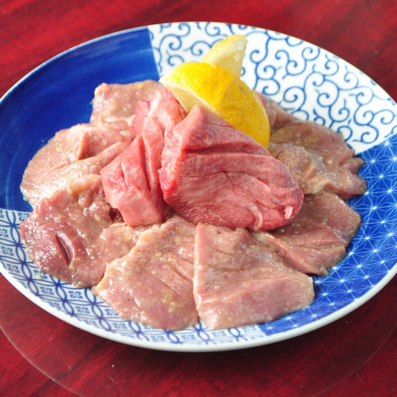 タンの稀少なやわらかい元の部分を贅沢に使用しました。2種の厚切りタンの食べ比べが楽しめる一皿です。