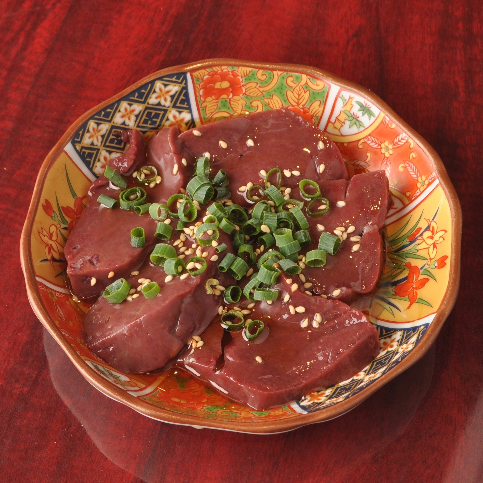 鮮度抜群な新鮮な牛レバーを厚切りで提供しております。しっかり火を通してからごま油と塩でお召し上がりください。