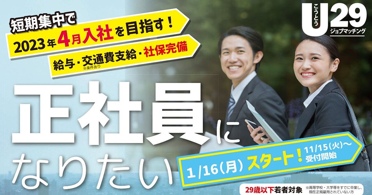 【江東区で正社員として働きたい 29歳以下の方対象】4月から正社員へ!「U29こうとうジョブマッチング」参加者募集中