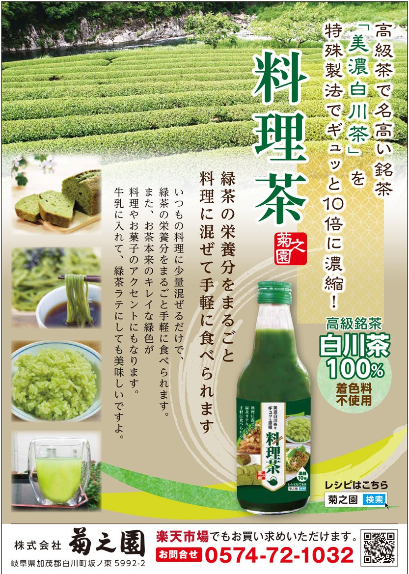 希少な美濃白川茶を10倍に濃縮!緑茶料理が簡単に作れる『美濃白川茶をギュッと濃縮 料理茶』が登場
