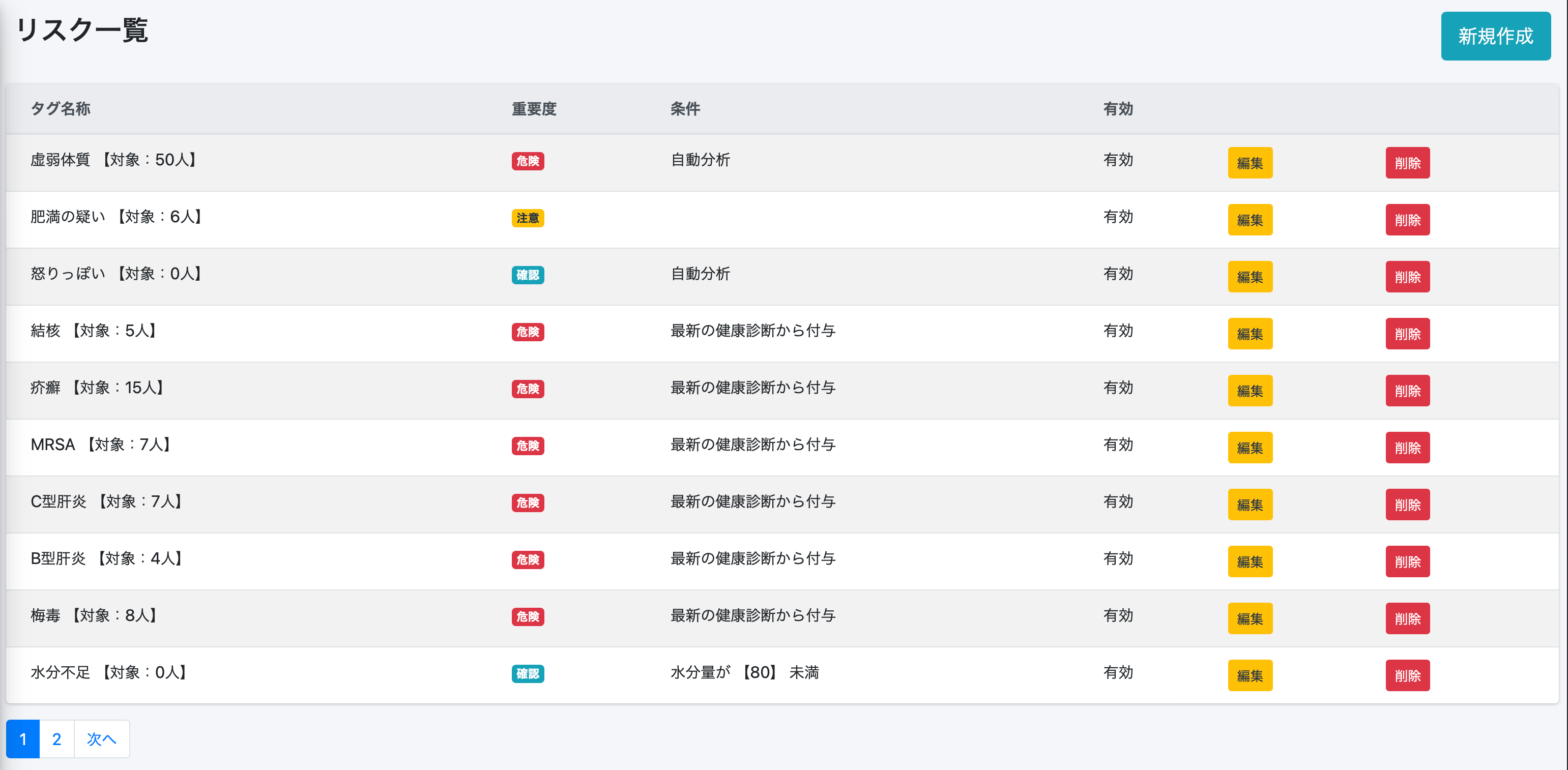例えば、上記画像の「虚弱体質」というリスクは、入居者様に対して“定義のしづらい”ものです。『ADLearning』は入居者様に関する情報(文字列、数値など)を自動分析し、リスクのある入居者様に該当のリスクタグを付与します。