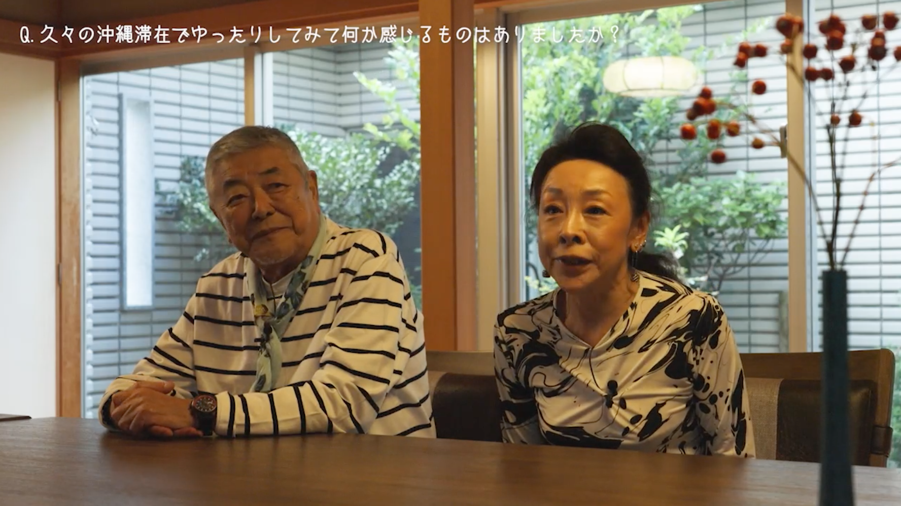 会員権の発売開始にあわせて、本プログラムの魅力を伝えるコンセプトムービーを制作、本日よりWEB上で公開(3分バージョン:https://youtu.be/F0VV9wcj-Gc 、1分バージョン: https://youtu.be/fNLRR9fsu0w)いたします。コンセプトムービーにご出演いただくのは、沖縄好きで知られる中尾彬・池波志乃ご夫妻。コンセプトムービーのテーマである“ウェルビーイングステイ”にあわせて、実際に沖縄で心身ともにゆったりとすごせる長期滞在のプログラムをご体験いただき、その合間に撮影をさせていただく形式で制作されました。