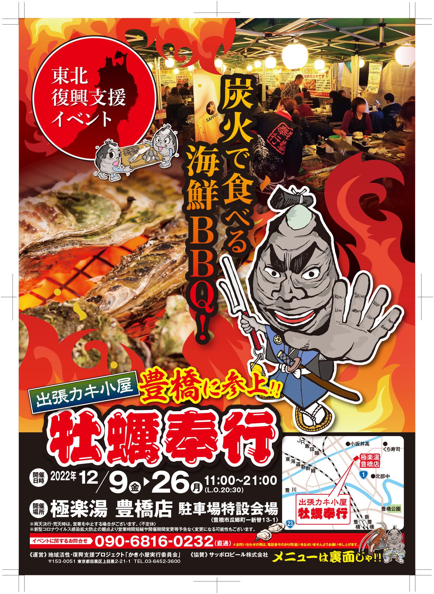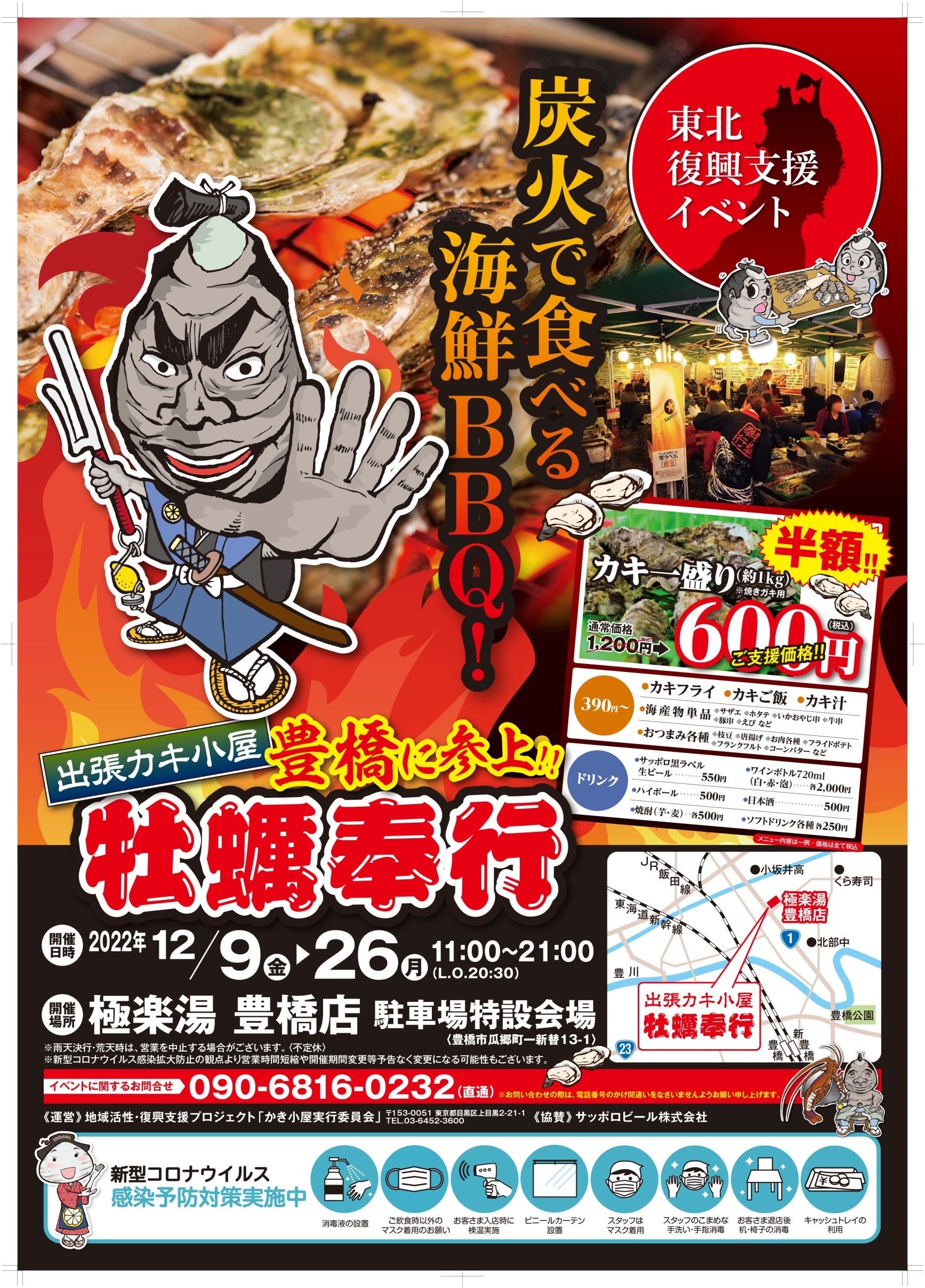 愛知県豊橋市で牡蠣!!12/9〜 出張カキ小屋が極楽湯 豊橋店にやってきます「地域活性・復興支援プロジェクト 牡蠣奉行」お風呂の後に美味しい牡蠣をどうぞ!