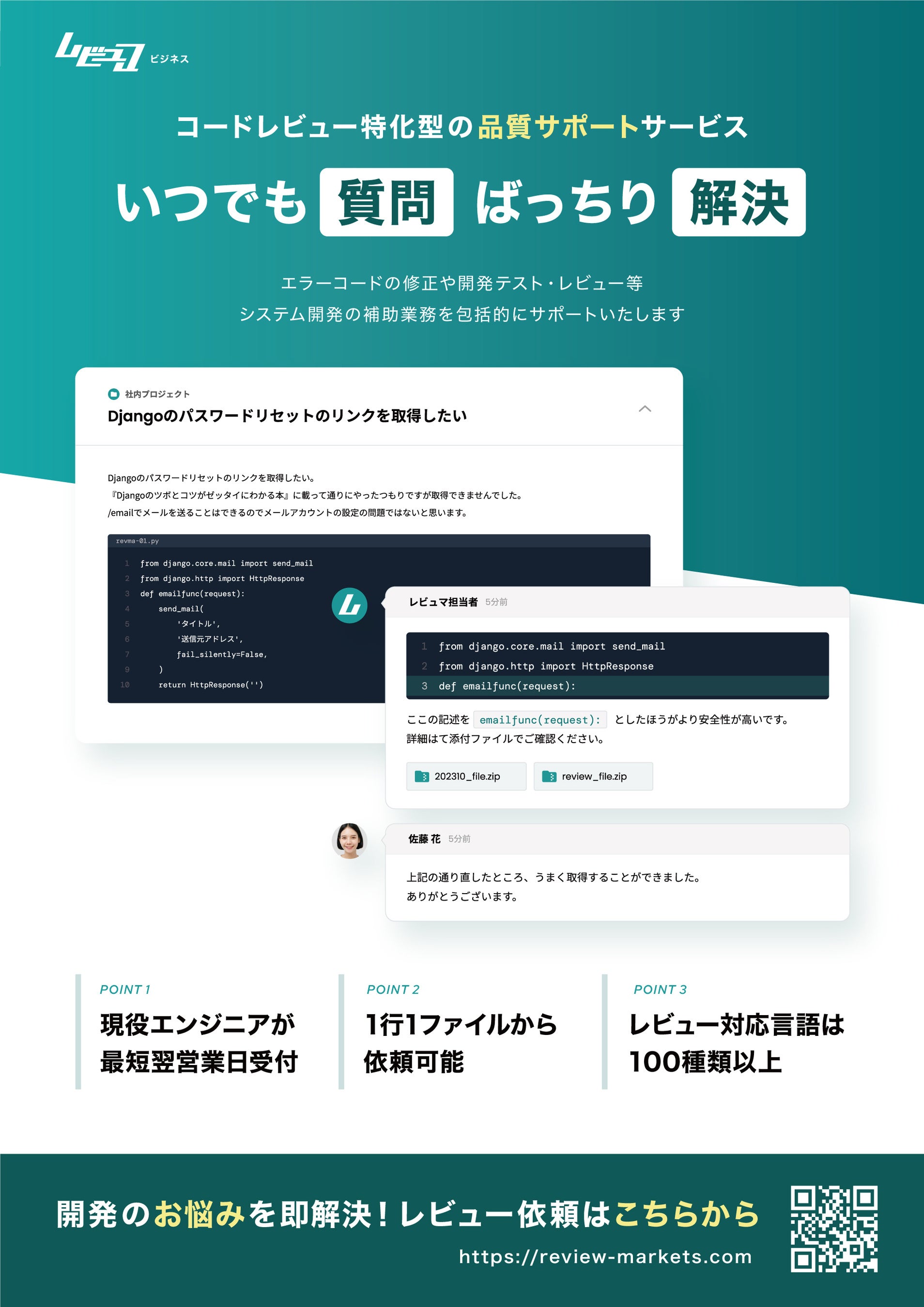 ReviewMarketsは、プログラムソースコードをレビュー(添削)するサービスです。