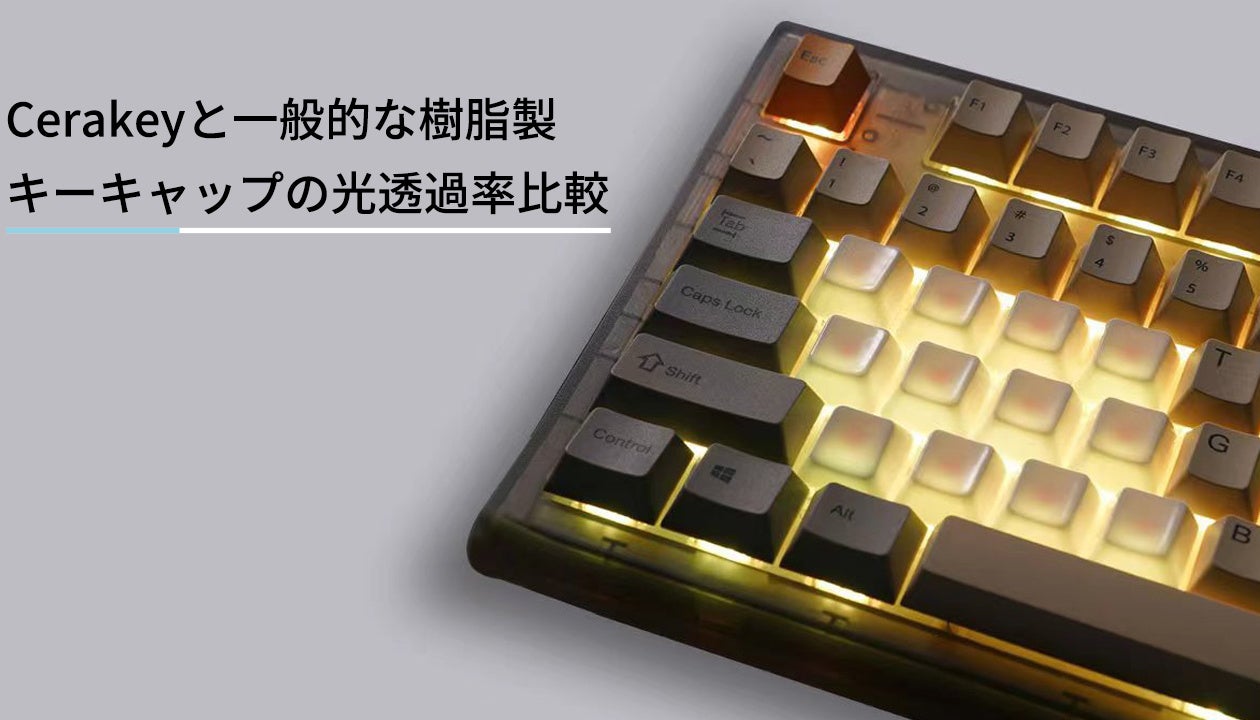 セラミックは一般的な樹脂製キーキャップよりも光の透過率が高く、タイピング触感を犠牲にすることなく、鮮やかなRGBバックライト効果を楽しむことができます。