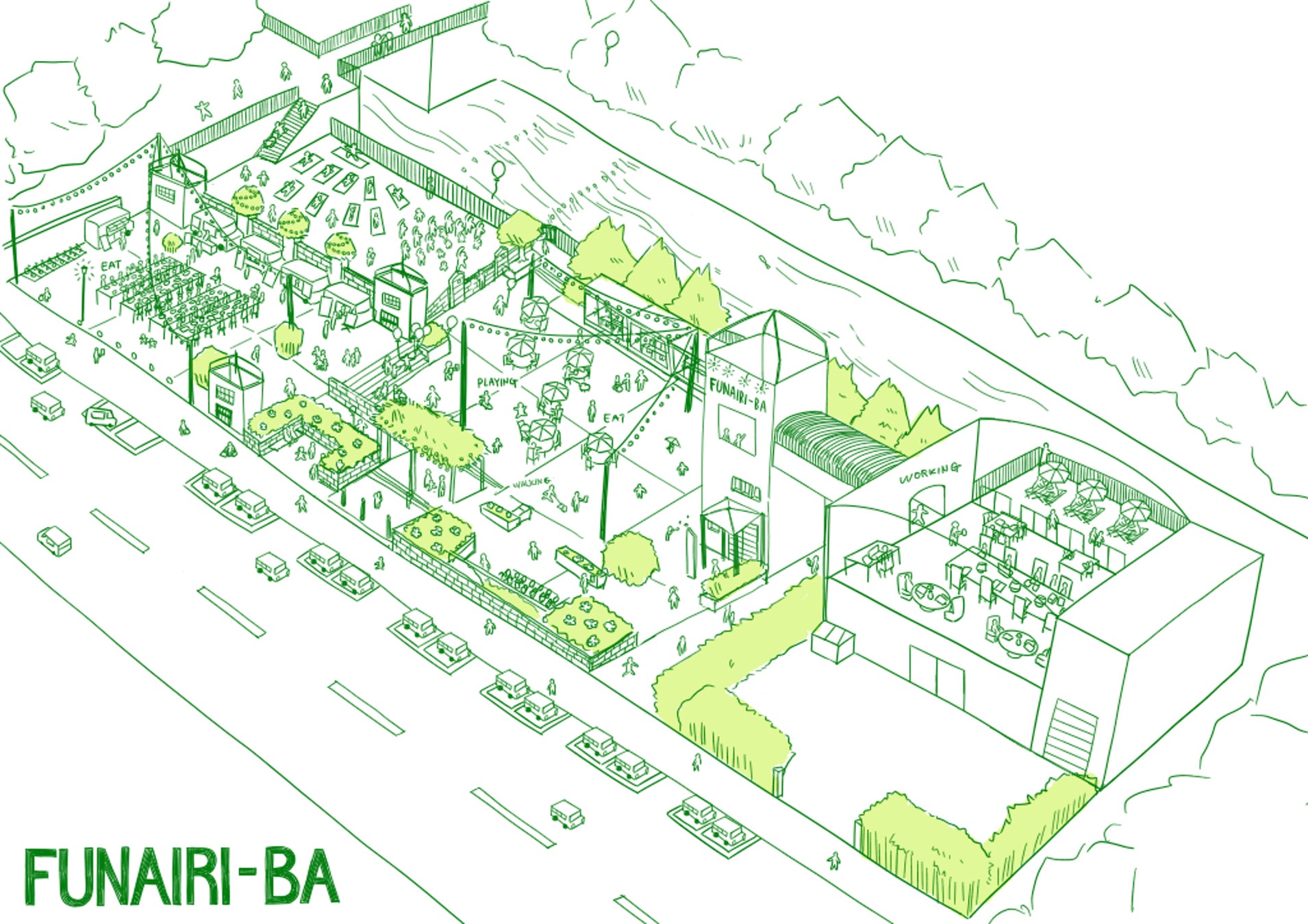 『FUNAIRI-BA』は、キッチンカーの出店やマルシェ・フリマでにぎわうイベントスペースと目黒川に関する資料を集めた「川の資料館跡」を利活用したコワーキングスペースが融合する新施設です。中目黒に住む人・はたらく人に新しいヒト/モノ/コトとの出会いや繋がりを提供し、これまでになかった新しいビジネスやカルチャーの発信地として地域の皆様に愛される場所づくりを目指します。