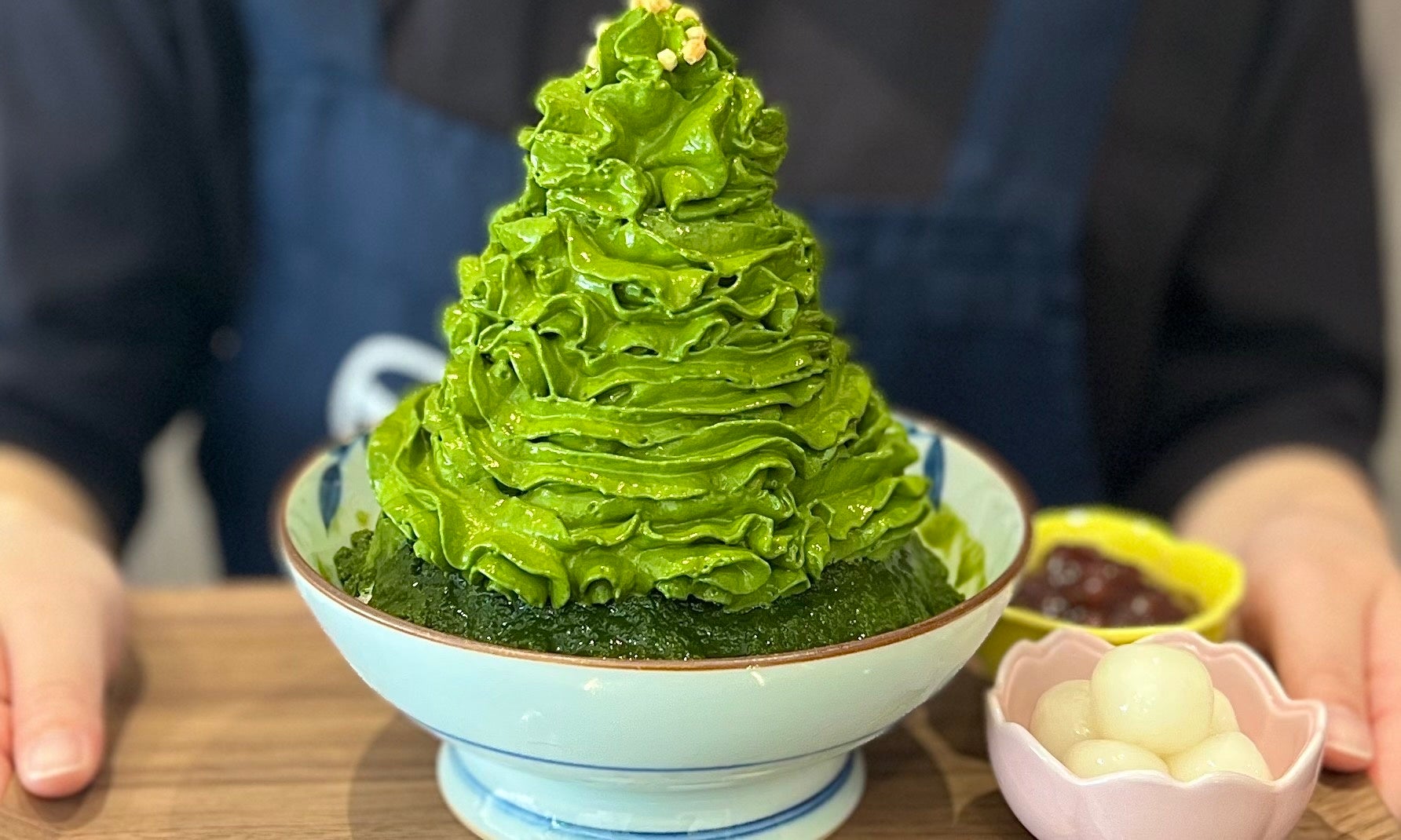 【冬でも人気の新雪のような「抹茶雪氷1280円」は業界トップクラスの茶臼挽き抹茶8%(薄茶6杯分)使用】