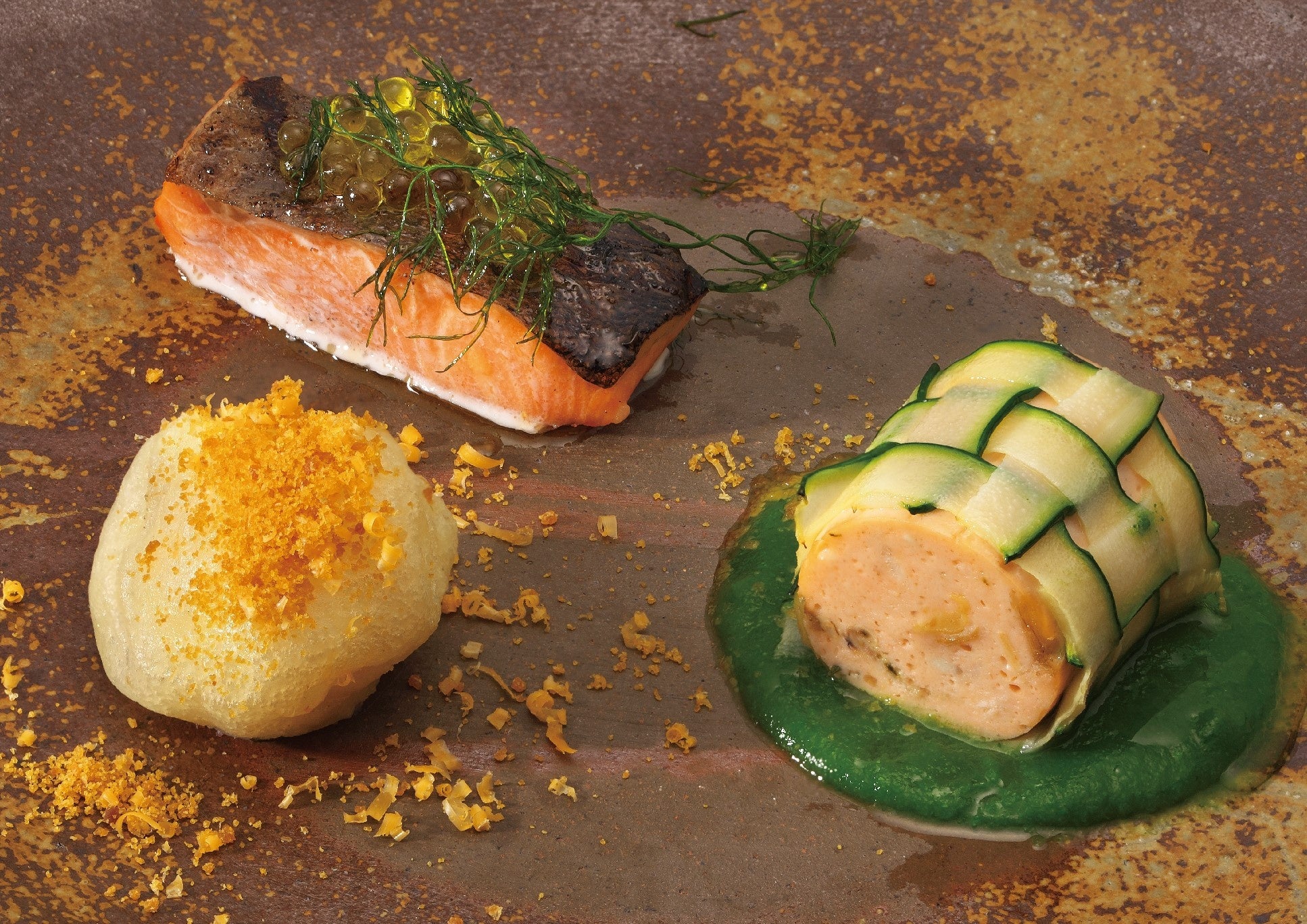 15種類以上の旬の野菜を使ったまるで宝箱のようなスープや身がぎゅっとつまった肉厚な須磨サーモンのグリル、豊かな野菜が育つ神戸の畑をイメージした一皿など、神戸の食の魅力を存分に感じて頂ける数々のお料理を提供致します。また、ドリンクにも、福寿(神戸酒心館)、仙介(泉酒造)、百黙(菊正宗酒造)といった灘の日本酒をはじめ、神戸ワイン、神戸ウォーターレモネードなど神戸のものを豊富に取り揃えています。