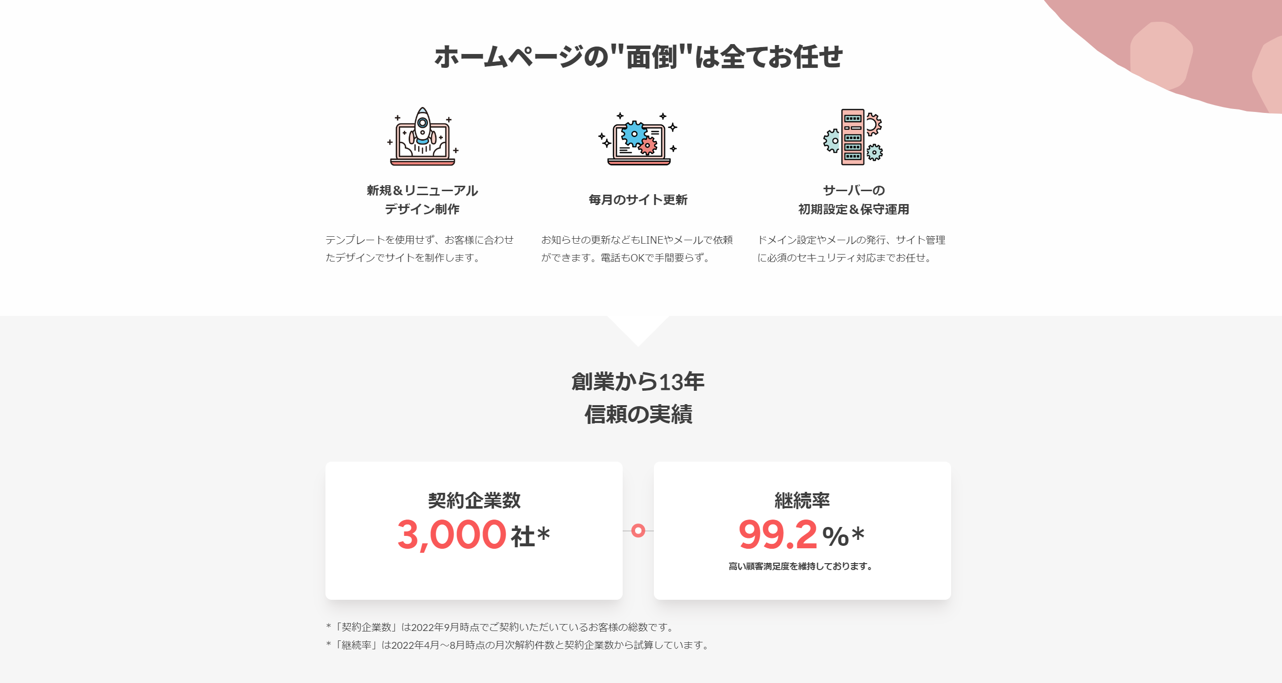 ドメイン設定からサーバーの保守運用、メールの発行まで お客様の“面倒”を可能な限り削減します。