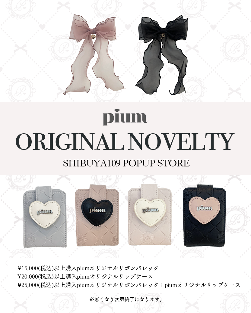 公式web store(https://piumofficial.shop/)でのオンライン販売を中心に行う当ブランドが、2023年1月に、SHIBUYA109渋谷店にて期間限定でポップアップストアを開催いたします。