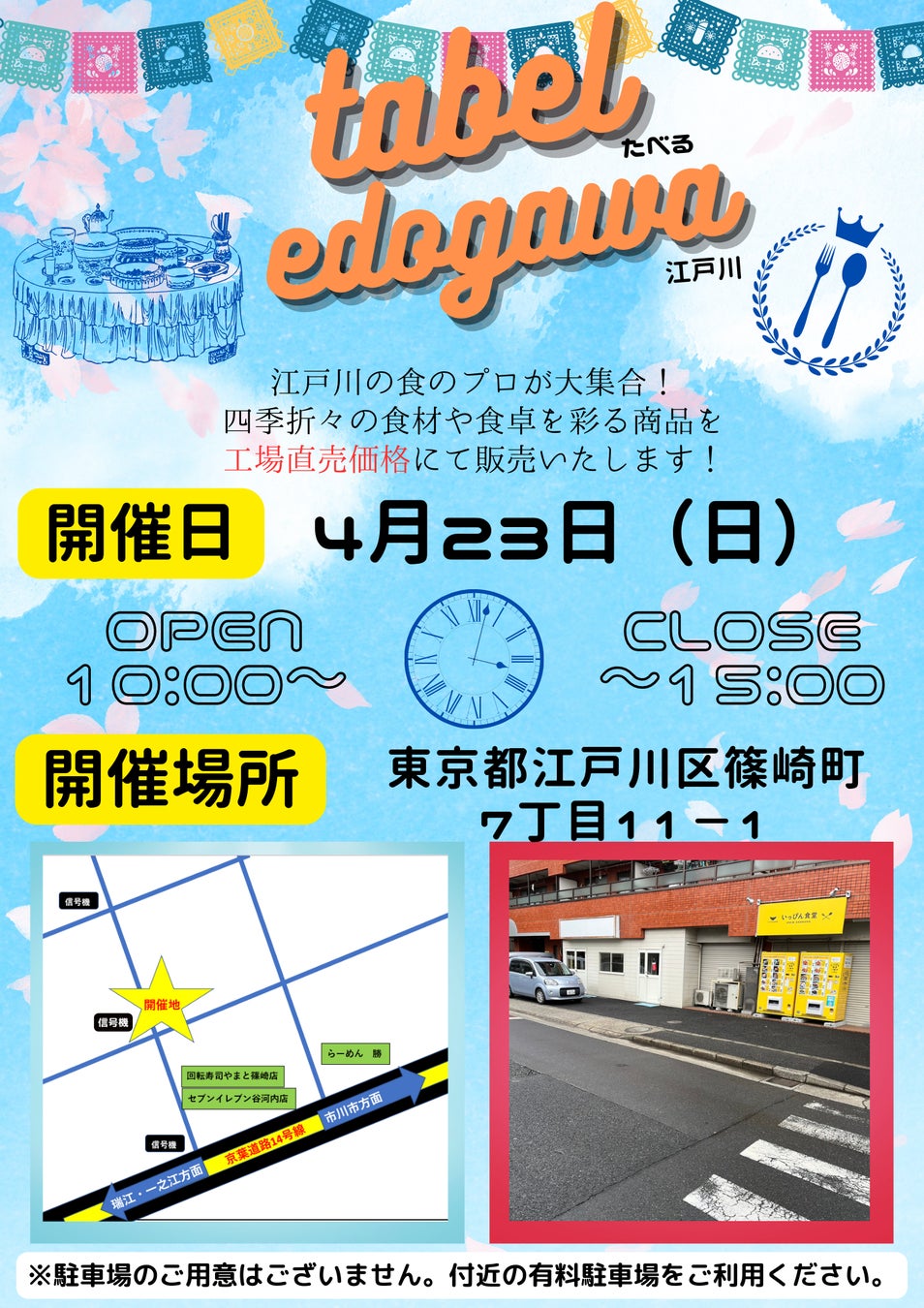 地域密着青果店『あおもの屋』 江戸川の食をギュッと集めたイベント『tabel edogawa(たべる江戸川)』を4/23(日)10時より江戸川区篠崎で開催!