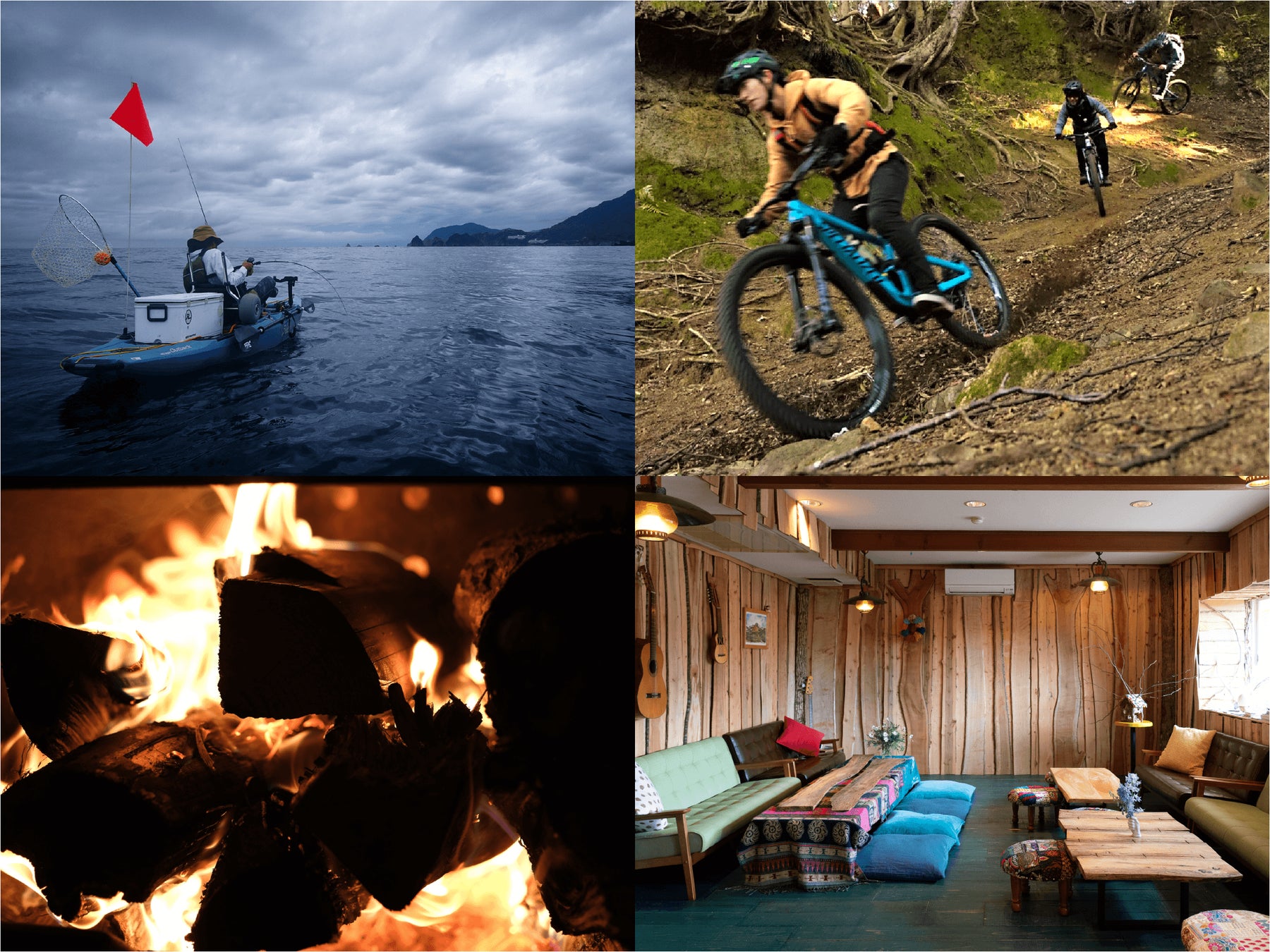 山中に眠っていた古道を再生し、マウンテンバイクで駆け巡る「YAMABUSHI TRAIL TOUR」、CO2を排出しないゼロエミッションをかかげた「カヤックフィッシング」、山と海に囲まれた小さな宿「ロッジ・モンド―聞土―」の宿泊体験――。