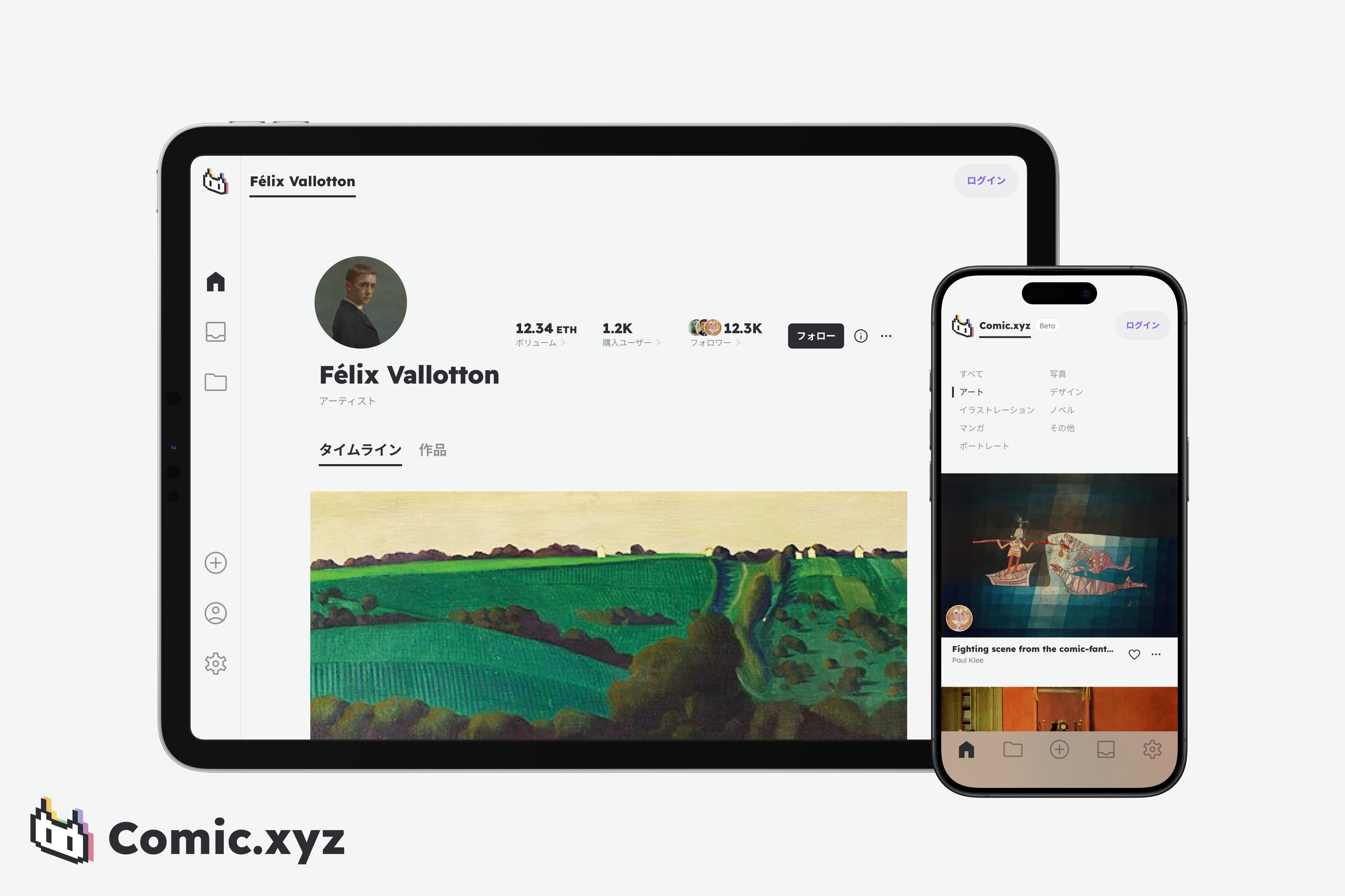 Comic(https://comic.xyz)はアーティスト・イラストレーター・漫画家・フォトグラファー・モデル・デザイナー・作家をはじめとする、すべてのクリエイターのための新しいSNSです。クリエイティブ活動の共有や画像で表現されたデジタル作品の発表・販売を行うことができます。
