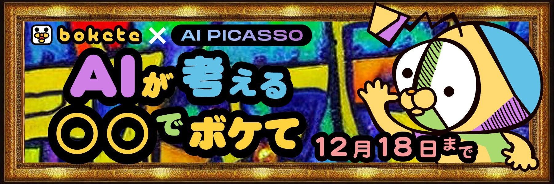 テキストから画像を生成できるAIお絵描きアプリ「AI Picasso」を提供するAI Picasso株式会社(本社:東京都千代田区、代表者:冨平準喜)は、写真で一言ボケるウェブサービス「写真で一言ボケて(bokete)」を提供する株式会社オモロキ(所在地:静岡県熱海市、代表取締役:鎌田武俊、以下、bokete)とコラボし、「AIが考える◯◯でボケて」を2022年12月5日(月)~12月18日(日)に開催します。