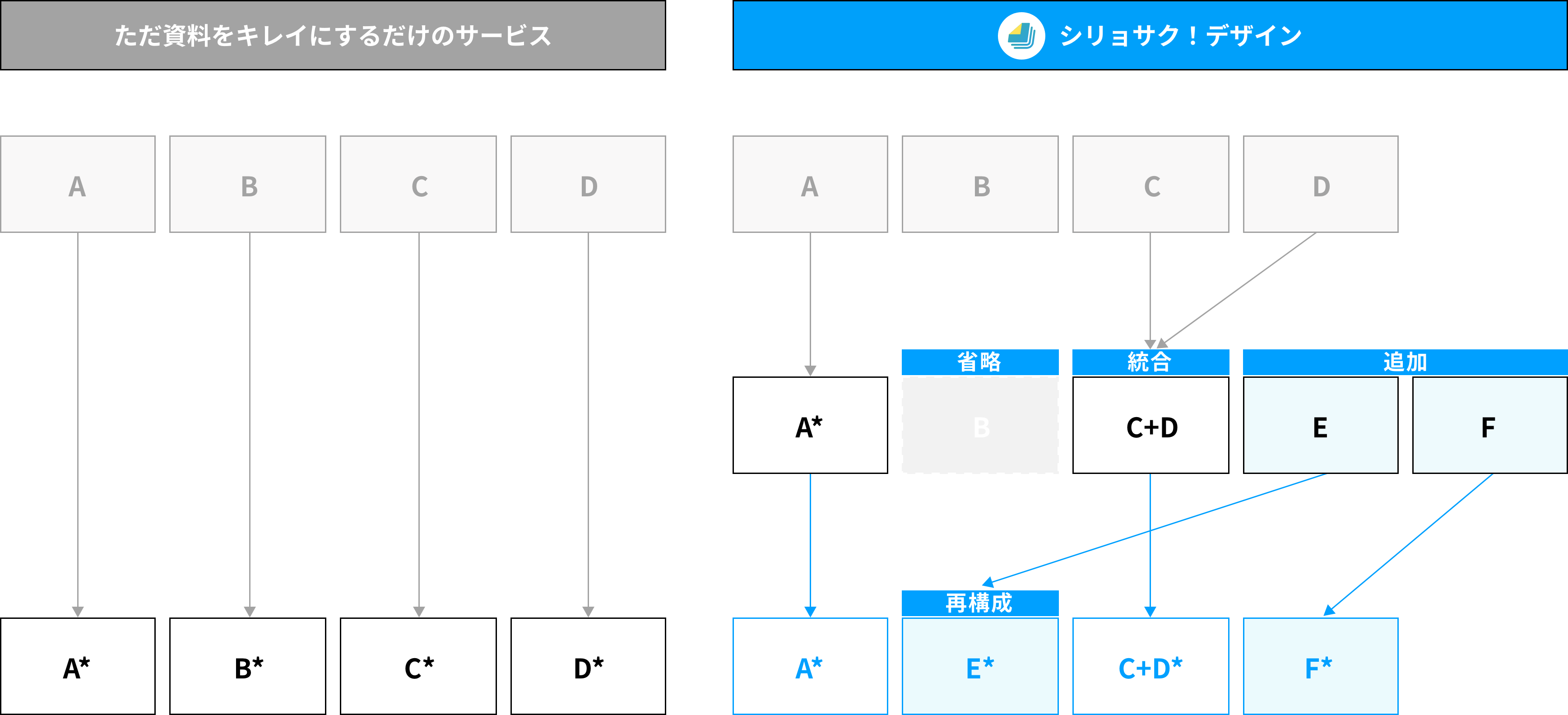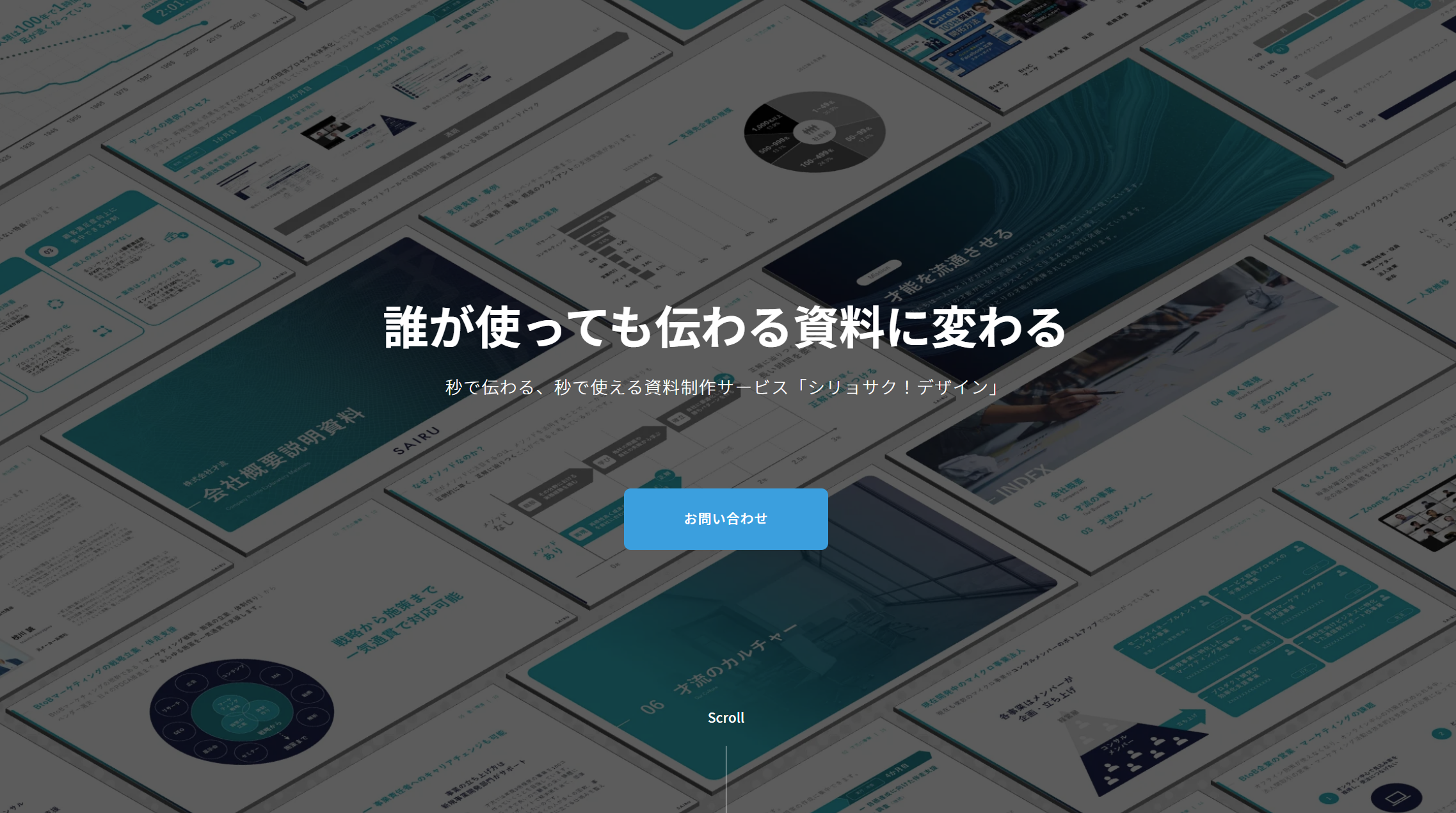 創業以来、「資料をもっとおもしろく。」をテーマに、会社説明資料や採用ピッチ等の資料制作や、わかりやすいパワポ資料を作れるようになるセミナー、オンラインコミュニティなど、資料に関わる様々なサービスを展開しています。「シリョサク!デザイン」は、シリョサクがこれまでにも行ってきた「資料制作サービス」をアップデートしてリリースするものです。