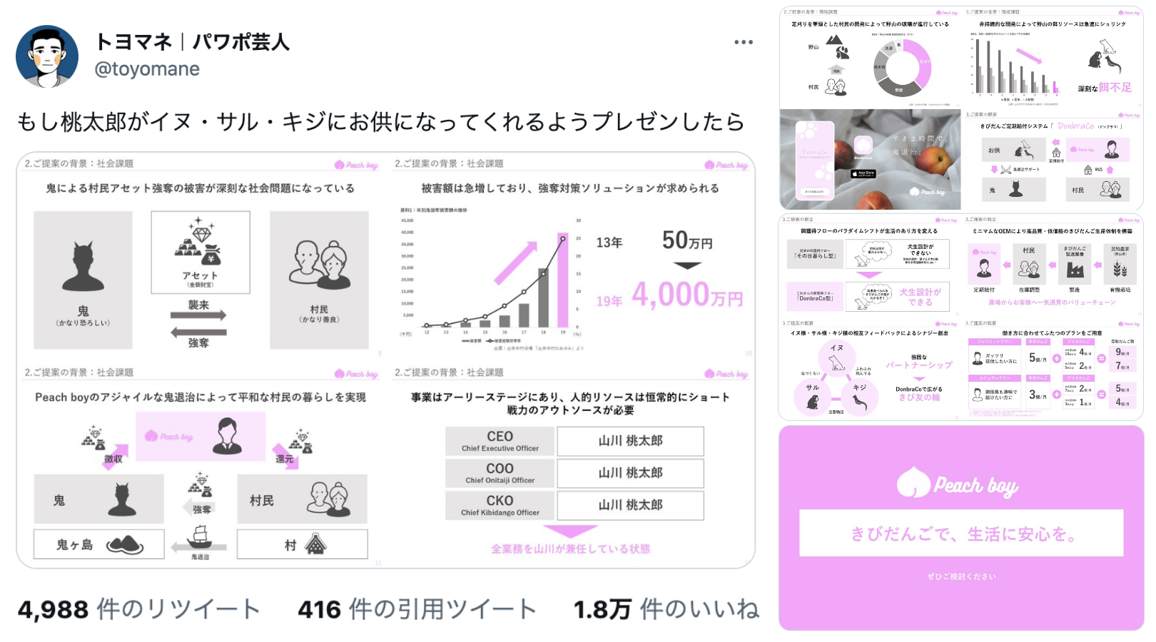 作成したスライドがTwitterで反響を呼び、11万人以上のフォロワーを集める。