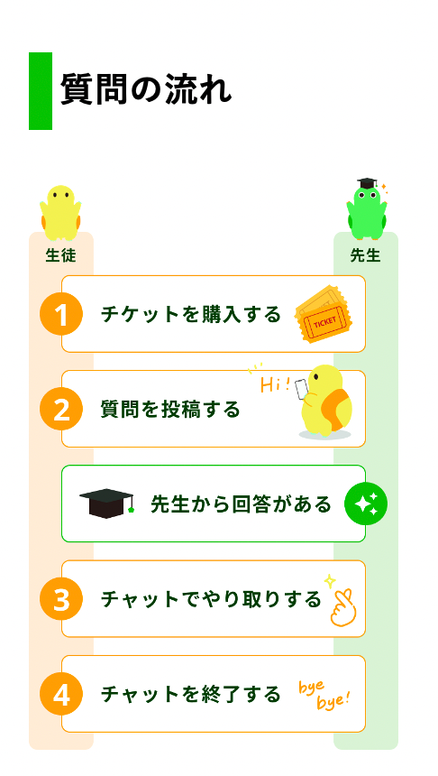 スマートフォンアプリでの提供にすることで講師はスキマ時間で質問・回答ができ、学習者も勉強をしながら気軽に質問できます。一問単位での価格設定にしていることもあり、学習者のニーズに応じて安価に利用することができます。