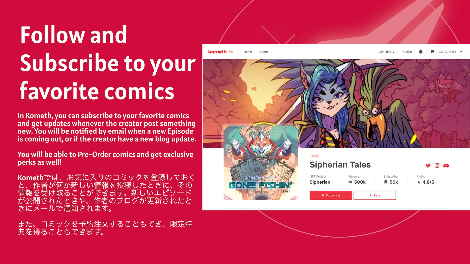GASPACK社の主力サービスのひとつである「Kometh」は、Web3電子コミック出版プラットフォームです。クリエイターがブロックチェーン上でTrue Digital Comics™形式でコミックを出版しやすくするために設計されています。公正な収益分配とクリエイターの権利保護を確保しながら、発見力を高め、クリエイター、ブランド、IPオーナーにとって、コミュニティ、ユーザー、ファンとの新たな関わり方を模索するための新しいフロンティアとなることを目指します。GASPACK社は、Web3エコノミーを活用し、クリエイターのビジョンを実現するお手伝いをいたします。日本のクリエイティブ・コミュニティにとっても、きっとお力になれると信じております。
