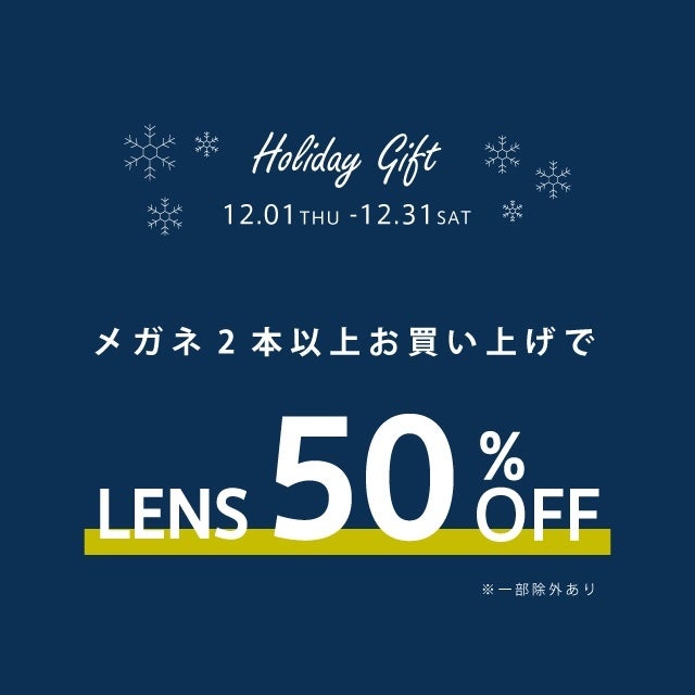 2022年12月31日(土)まで全国のポーカーフェイスで眼鏡フレームを2点以上ご購入でレンズが半額になるキャンペーンを開催します。2023年の年明けを新しいメガネで迎えませんか?