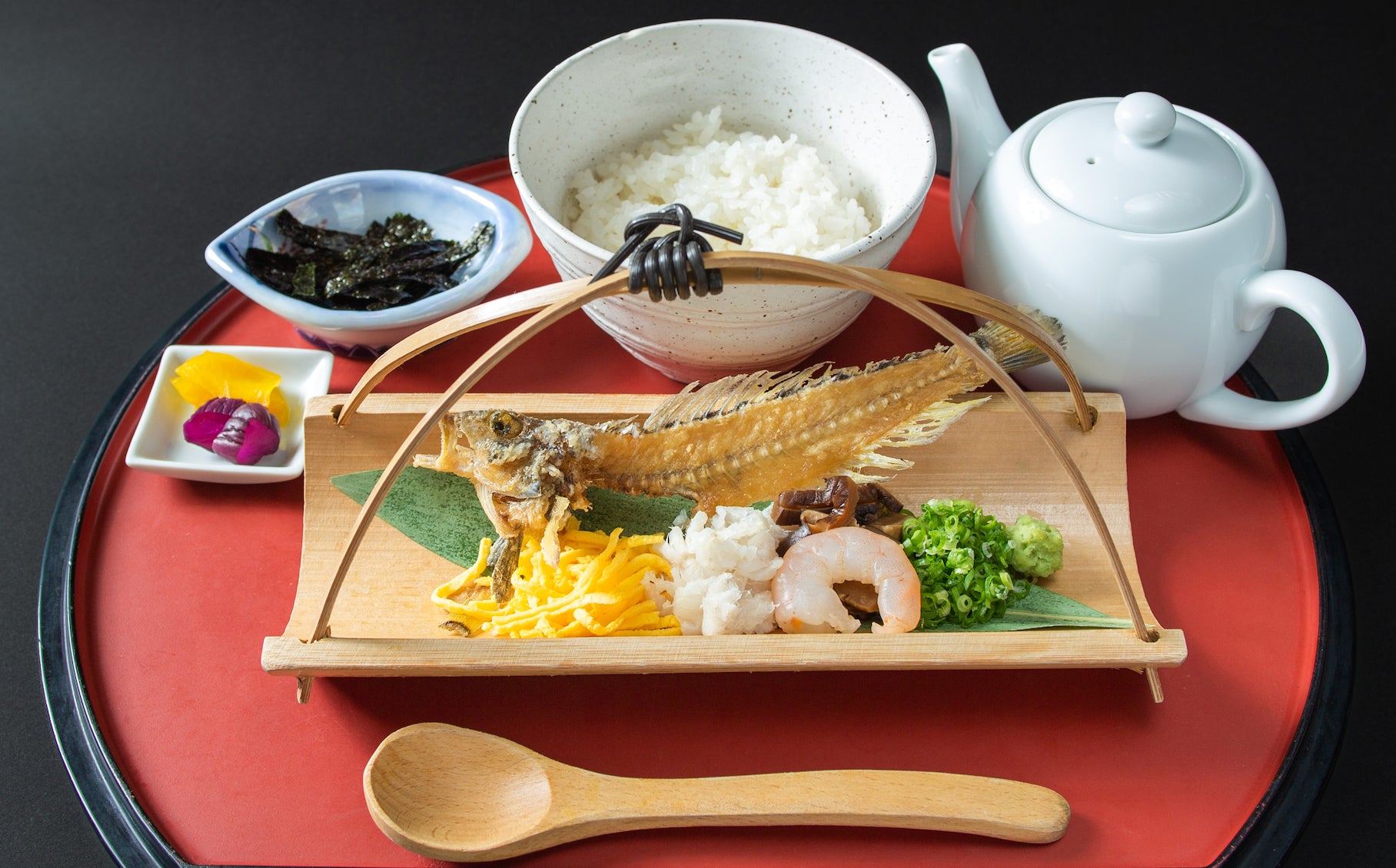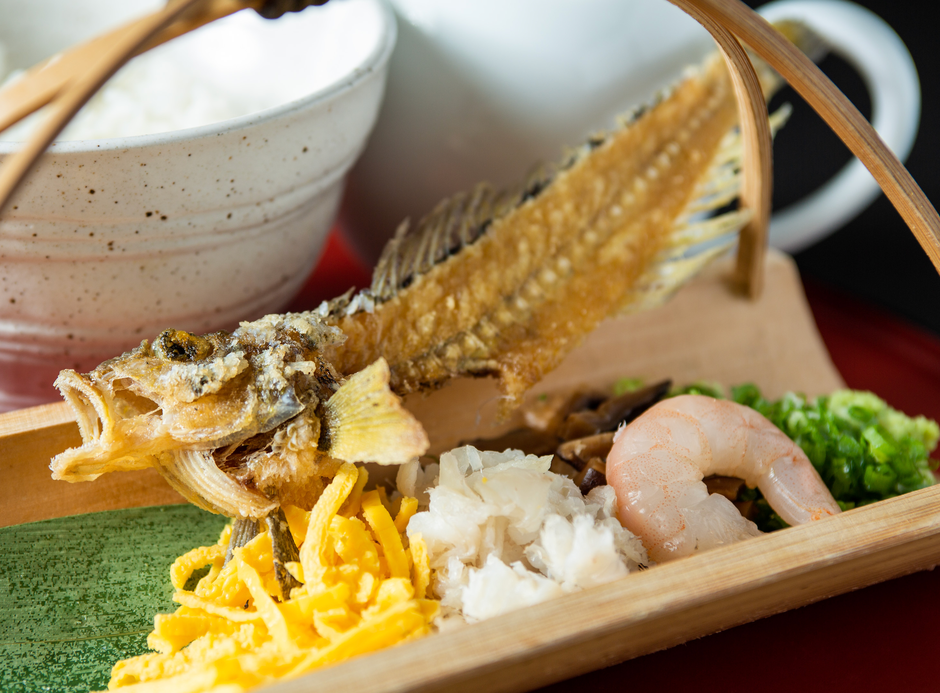 塩田の持ち主は「浜旦那(はまだんな)」と呼ばれ、塩田が生み出す富を背景に豊かな商人文化を竹原に根付かせました。「魚飯」はその「浜旦那」が来客時のおもてなしや祭事の料理として提供したものといわれています。塩田は1960年頃に廃止され、それとともに「魚飯」も姿を消しました。そのことから「塩田とともに消えた幻の料理」と言われてきました。ところが近年、竹原の食文化を研究する団体が古い新聞から「魚飯」の記事を発見し、市内のお店での復活にいたりました。竹原の歴史・文化が生んだ幻の郷土料理「魚飯」をお楽しみください。