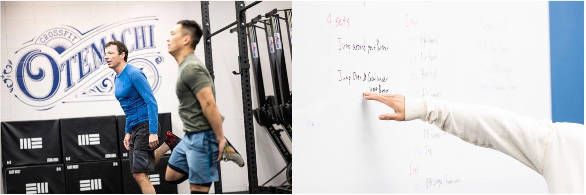 どなたでもお気軽に参加頂けるよう都度利用(ドロップイン)も可能としており、メインで実施しているクロスフィットは、参加者のワークアウト結果がホワイトボードに記録される他、チームやペアで結果を競うような競技的要素を取り入れることで参加者間の仲間意識を育てることにも繋がります。