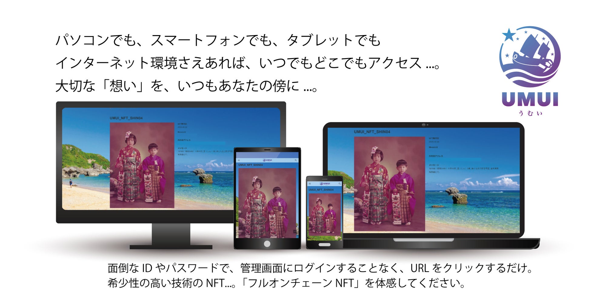 NFT次世代写真館『UMUI~うむい~』は、沖縄に訪れた観光客の方々の大切な思い出や家族の記念写真、ウェディングなど、特別な「想い」を特別な「カタチ」として、NFT化し記録・提供するサービスです!!