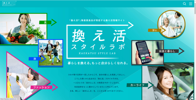換え活スタイルラボでは、多くの人が実際に取り組んでいる「換え活®」をご紹介しています。また、「換え活®」に賛同いただいている企業が推奨する「換え活®」の方法などについても情報発信を行っています。URL:https://kaekatsu-stylelab.com/