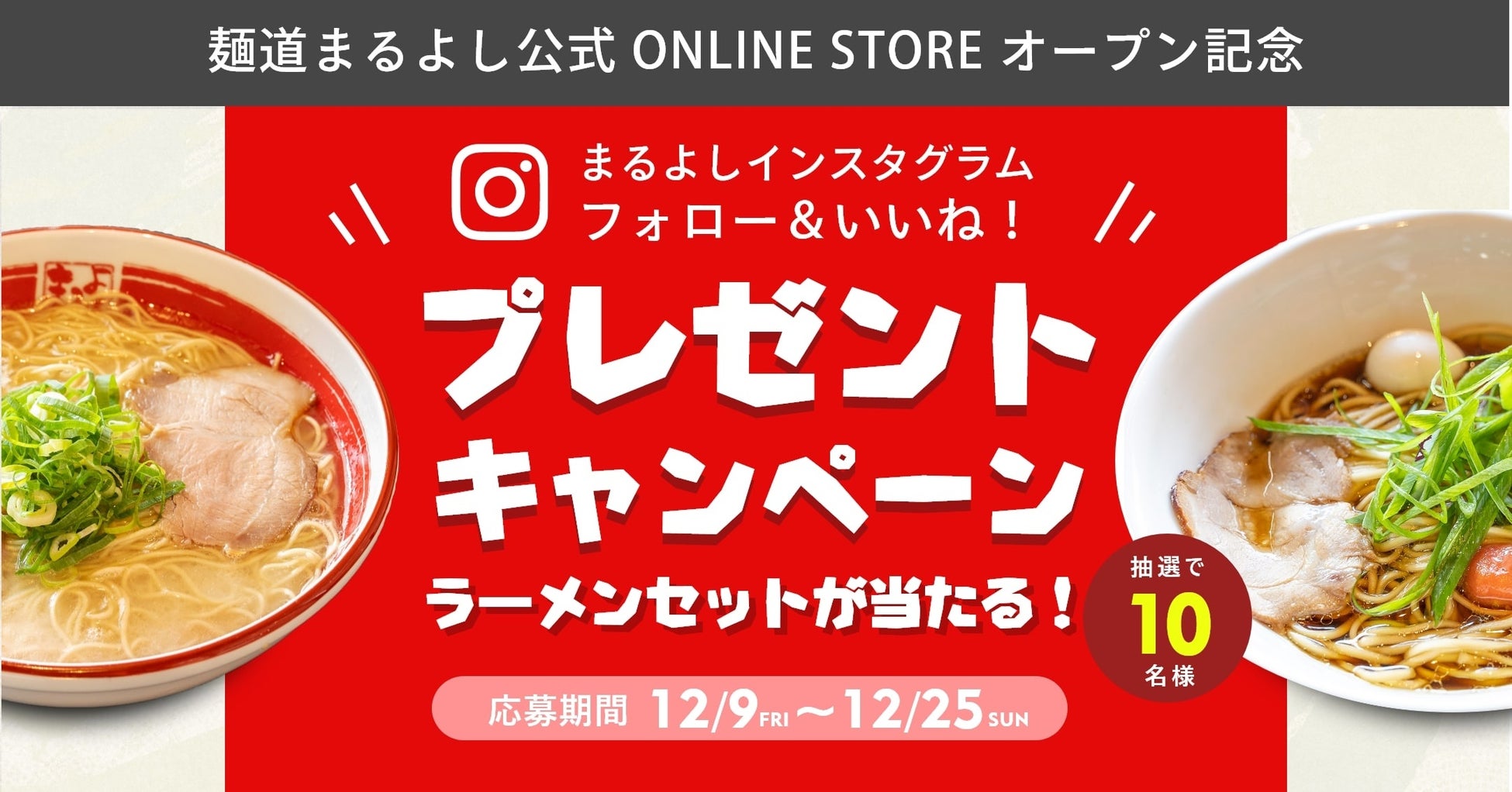 Instagramフォロー&いいね!で、まるよしラーメンセットを抽選で10名様にプレゼント!ぜひお気軽にご参加ください。〈@maruyoshi0015〉