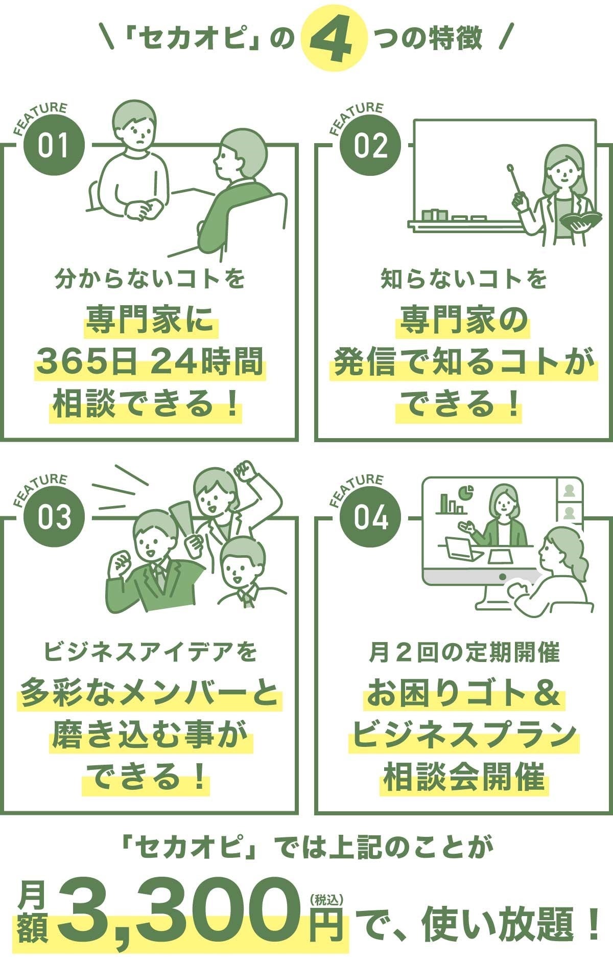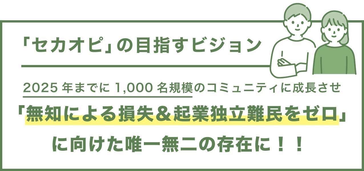 「セカオピ」は、独立起業を検討している人や、独立起業して間もない人に向けた、新時代のお困りゴト発見&解決コミュニティです。