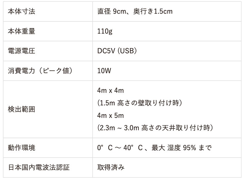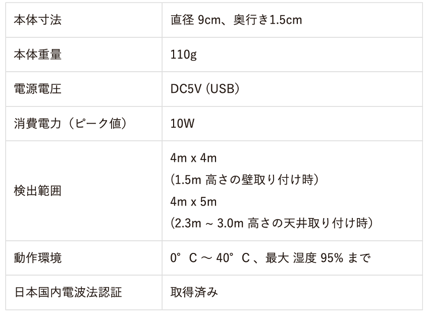 検出エリアが広い(センサー1台で4m×5m四方「天井設置」、4m×4m四方「壁設置」)