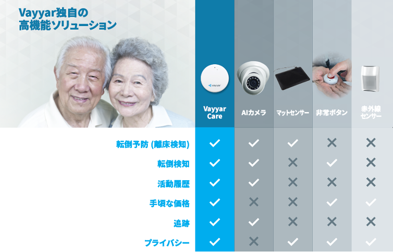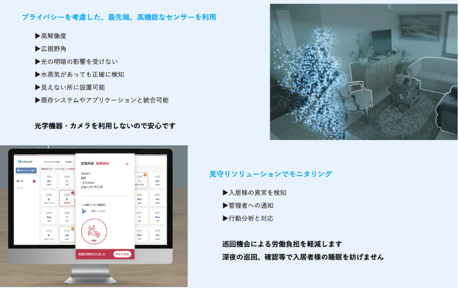 “ヴェスタ”は、高齢者のプライバシーを保護し、24時間見守るカメラ不要のソリューション