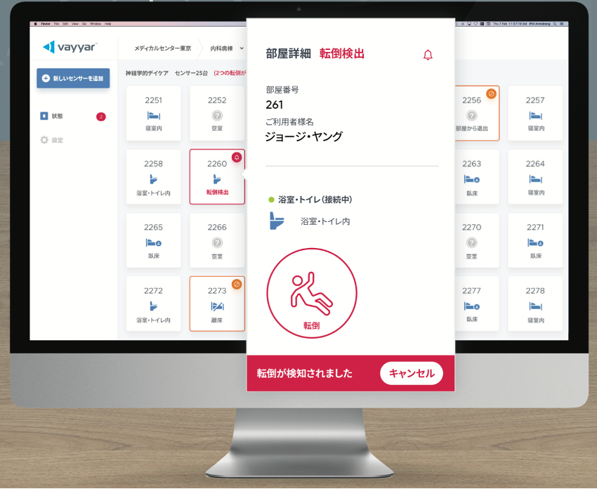 ・ 異常(転倒、長時間の不在など)があった際にダッシュボード(モニター)に表示