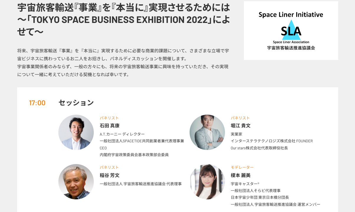 TOKYO SPACE BUSINESS EXHIBITION 2022 にて、一般社団法人宇宙旅客輸送推進協議会(SLA)企画イベントのお知らせ