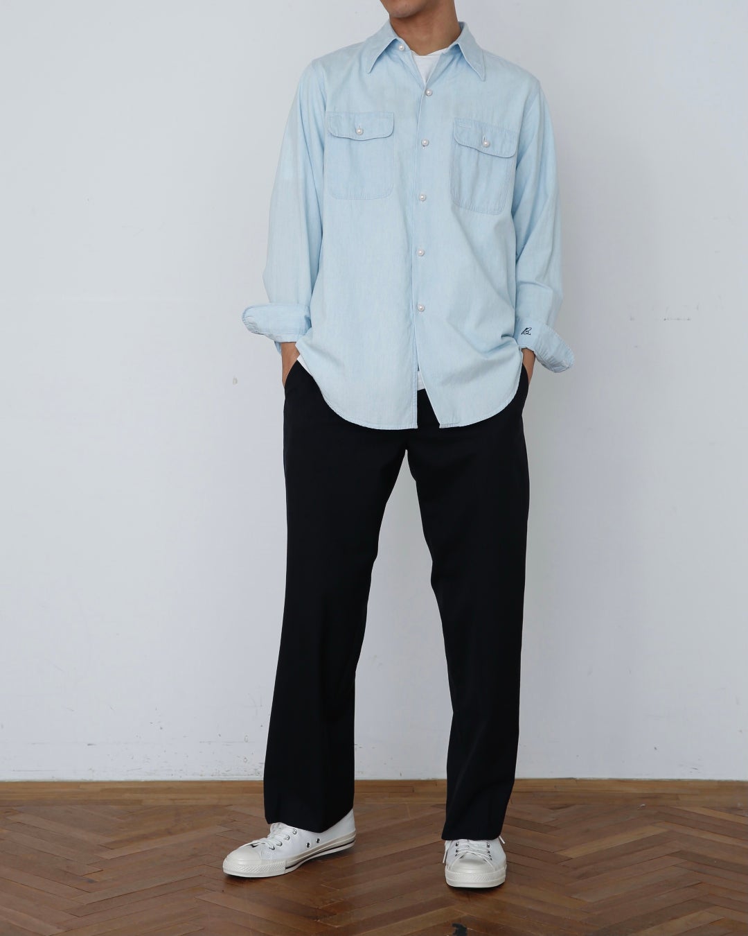 私たちにとってCONVERSE ALL STARはドレスシューズという存在。あえてドレッシーなものに合わせた、気取らないスタイルが提案です。