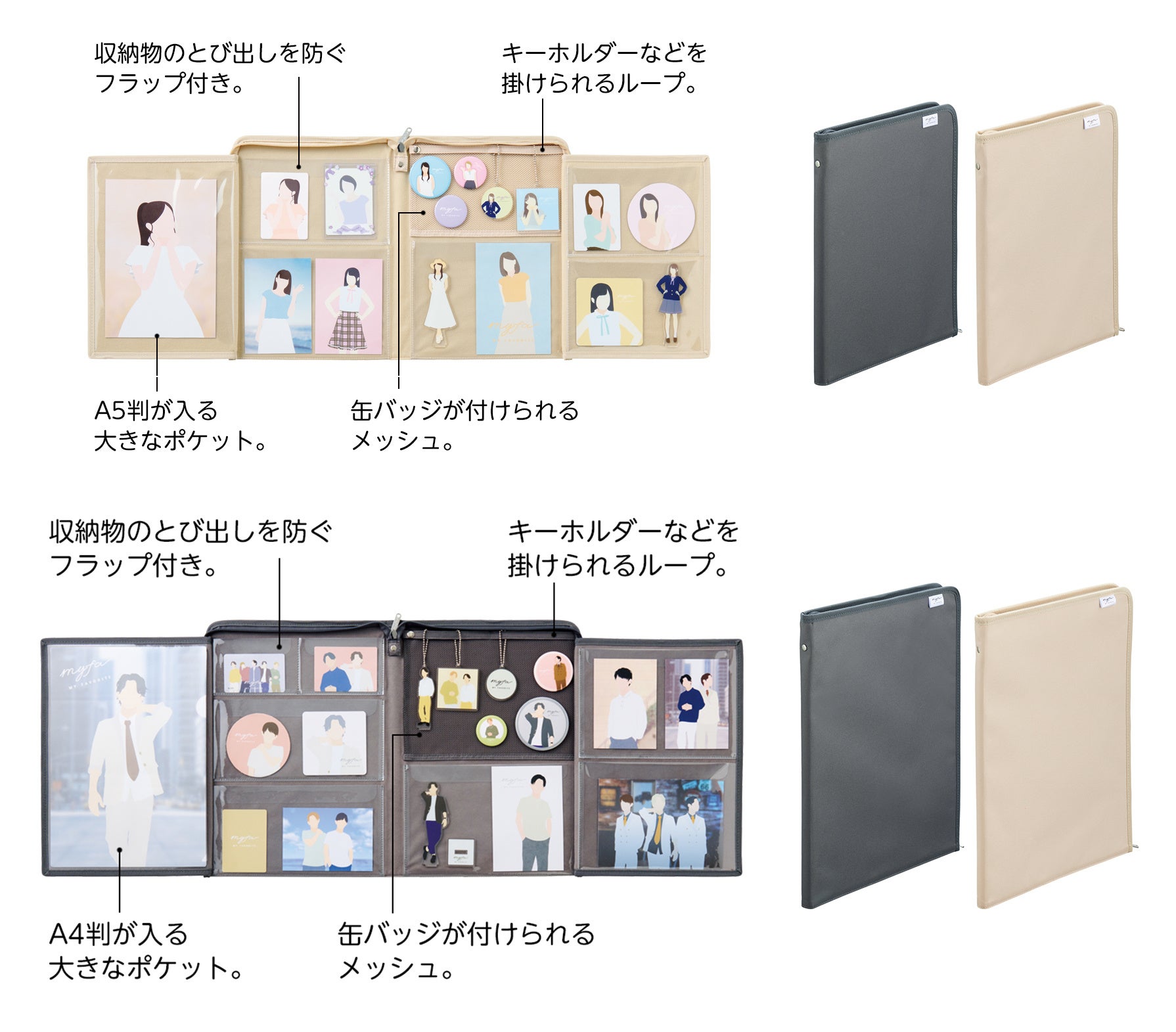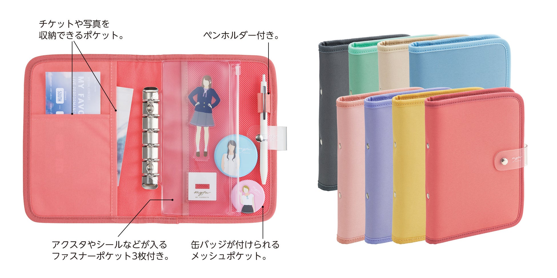 推し活グッズの整理収納ができるアイテムを揃えた「推し活応援サプライ」としてmyfa(ミファ)を発売し、文具市場に新たなカテゴリーを提案します。文具メーカーならではの整理収納ノウハウを盛り込んだファイル用品と縫製品をラインナップいたしました。